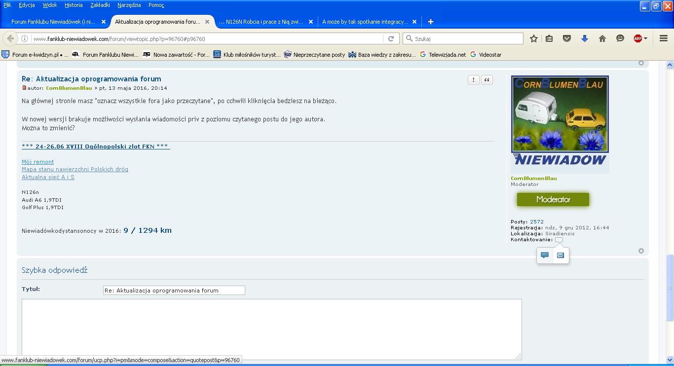 W nowej wersji brakuje możliwości wysłania wiadomości priv z poziomu czytanego postu do jego autora.
