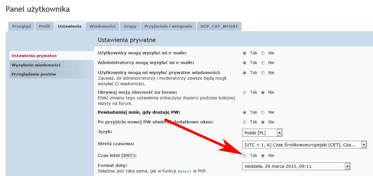 W profilu użytkownika, w ustawieniach, należy zmienić jak na fotce....