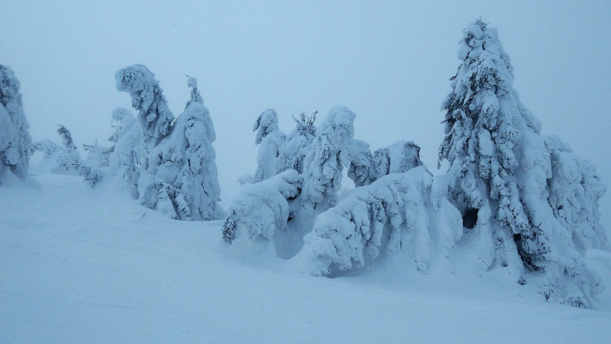 Zdjęcia drzew zasypanych zrobione słabym telefonem Lenovo w 2018 roku chyba