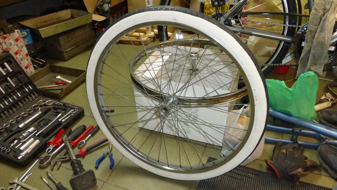 Zrobiło się kółeczko :) Szprychy ponaciągane, udało się też przywrócić blask obręczom które były matowe i pokryte rdzawym nalotem. Żmudna praca ale efekt fajny.
