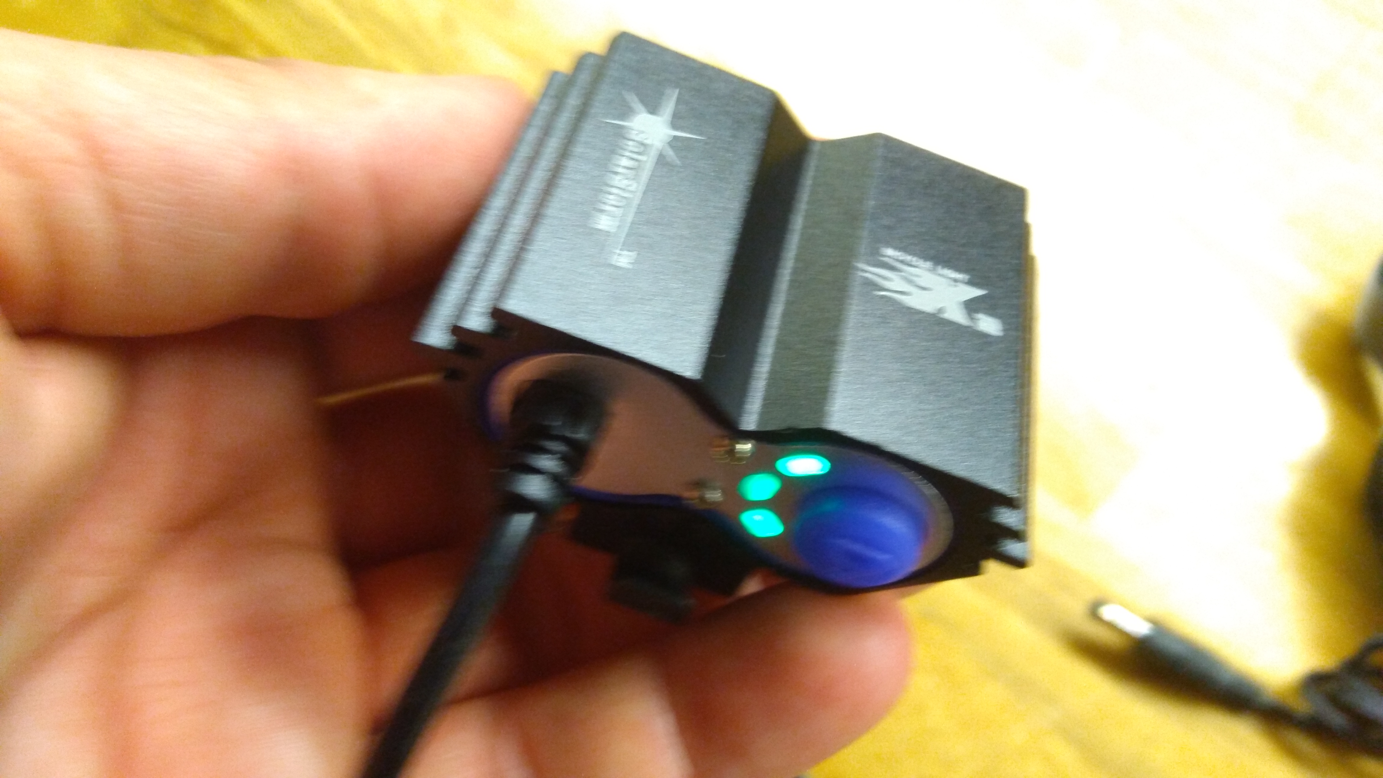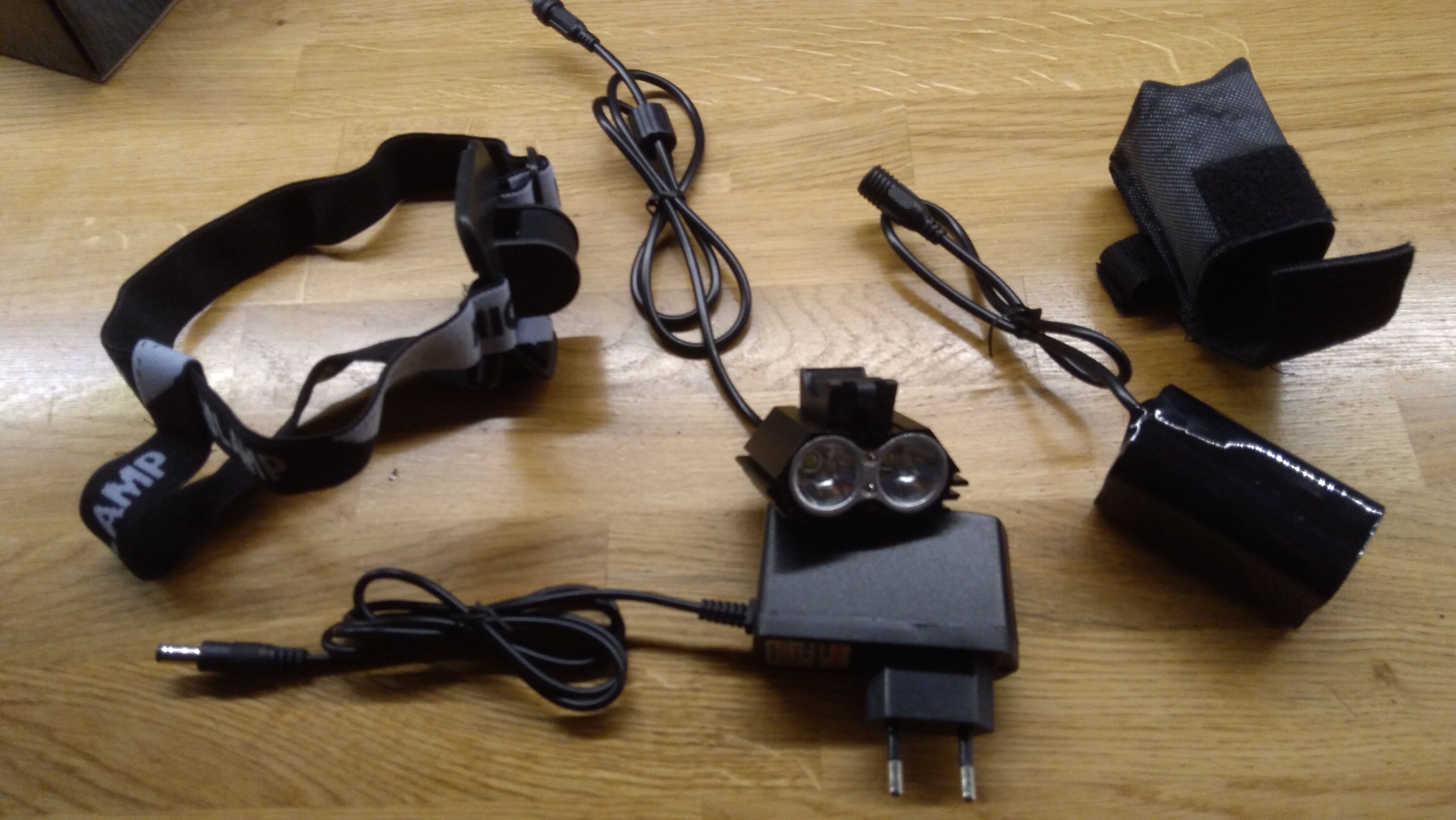 Dwie diody COB w tubach soczewkowych, akumulator wielości 4 paczek Tictac'ow z ładowarką, 3 poziomy jasności do wyboru i 3 godziny pracy na najwyższym poziomie. Saszetka z rzepami do zamocowania na ramie, wodoodporne wtyczki, opaska na głowę (naczołówka)...
