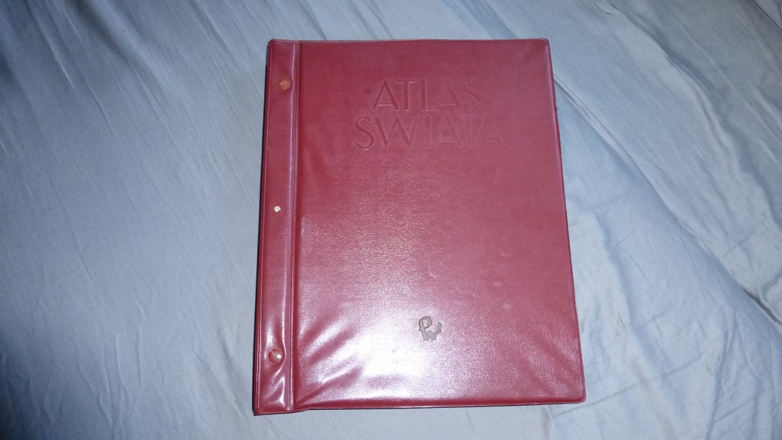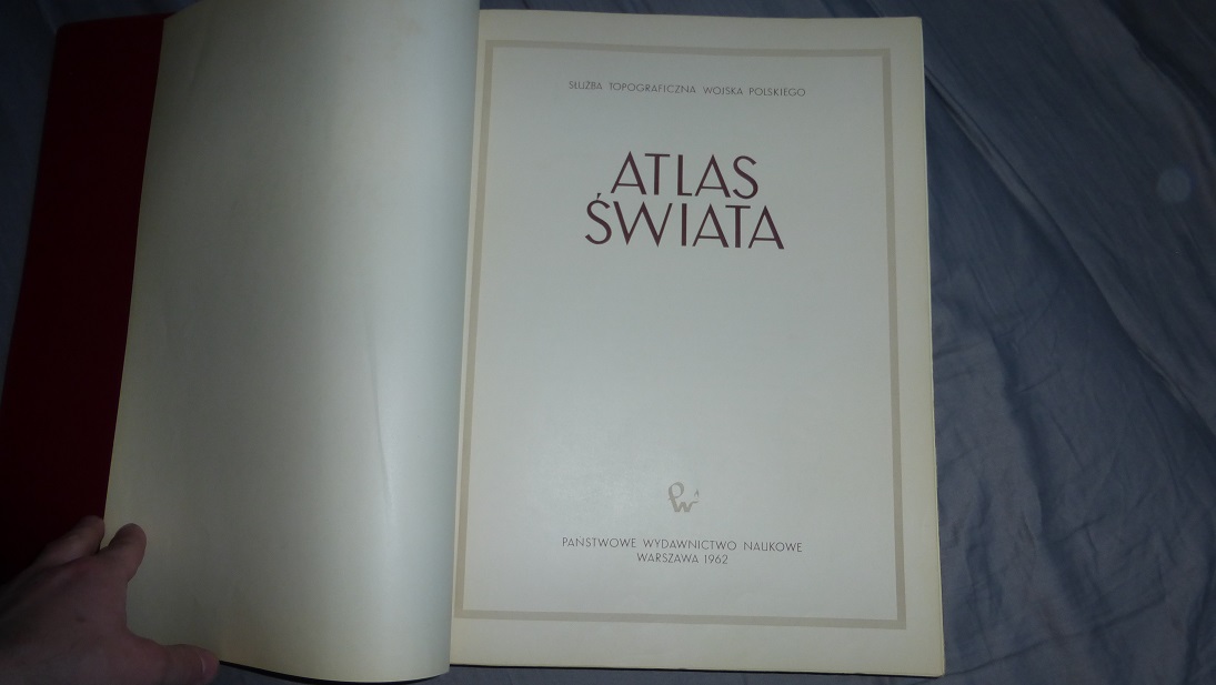 Zbieram też różnego typu publikacje. Najbardziej okazałą jaką zdobyłem jest "Atlas Świata" z 1962 roku w idealnym stanie. Może to mniej ciekawe niż sprawy techniczne ale też ma swój urok. Niesamowita księga: