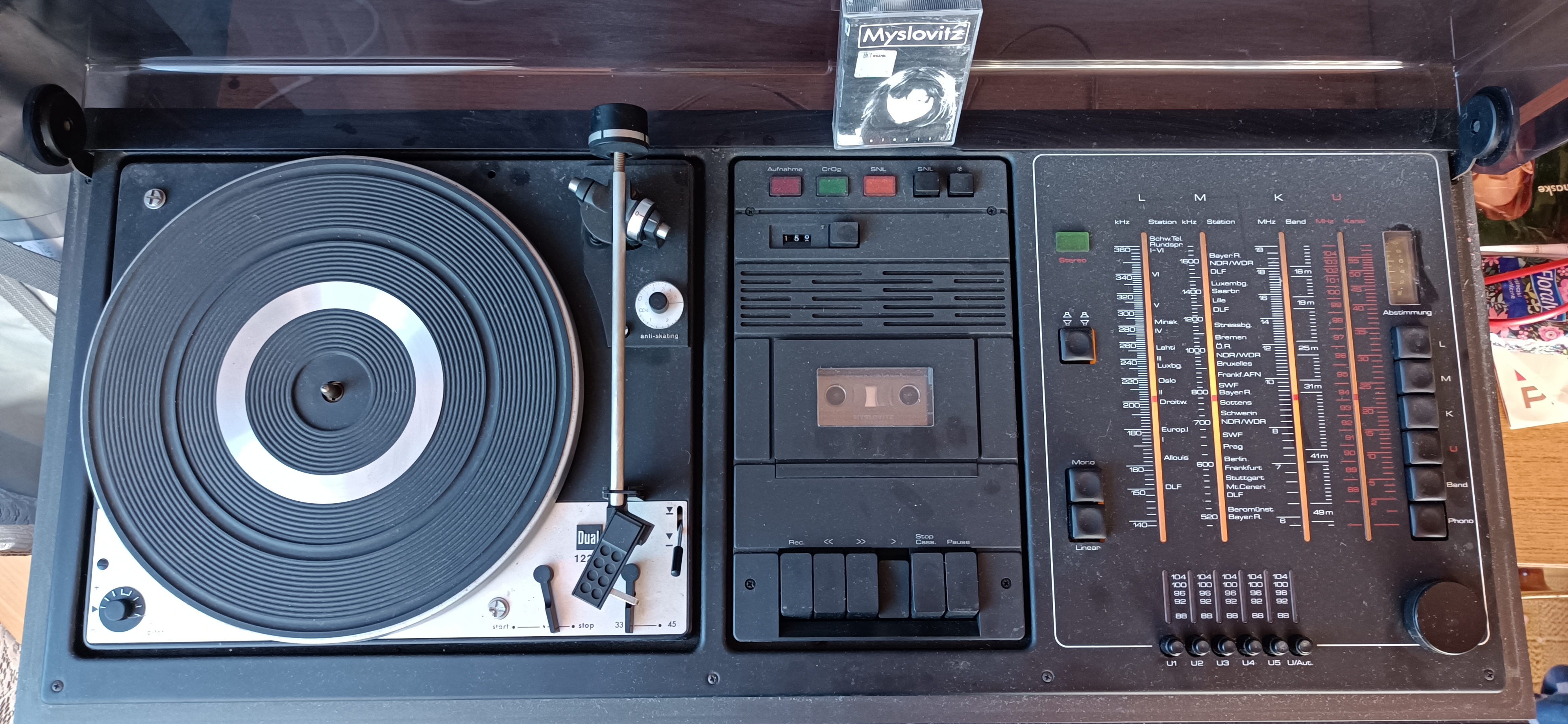 Sprzęt z roku 1976 o dziwo w pięknym stanie wizualnym i co się okazało po wnikliwych oględzinach niezłej kondycji technicznej z bardzo dobrym gramofonem Dual, sprawnym magnetofonem i rewelacyjnym tunerem.
