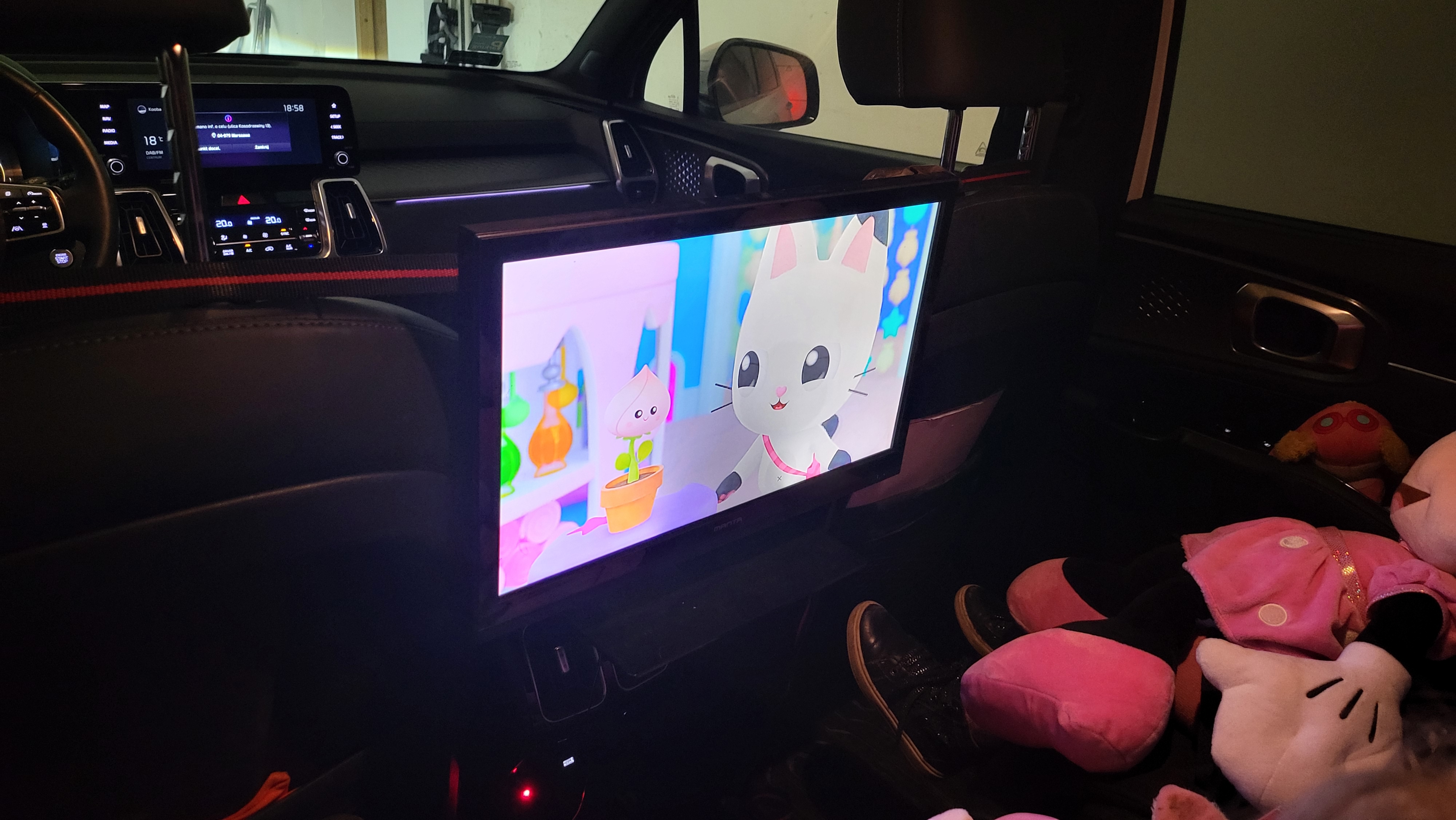 Trzeba było jakoś ogarnąć przejazd 150km startując o 17 żeby dzieciaki nie spały. Tym sposobem KIAnka dostała nowe wyposażenie czyli zestaw multimedialny