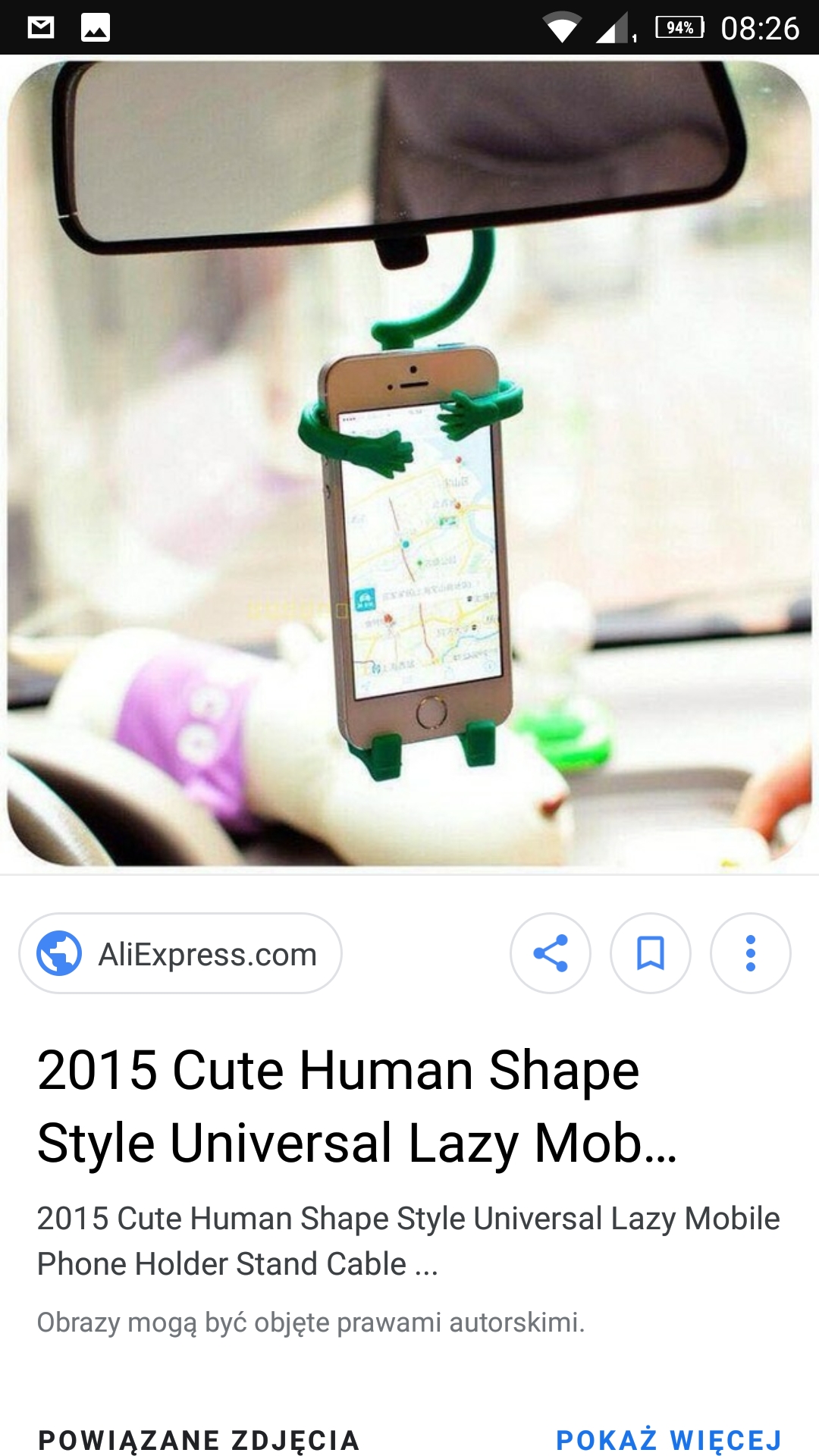Tomek pierwsza sprawa to taki z drutem w środku jak pokazałeś to najgorsze rozwiązanie. Najlepiej masywny sztywny z krótkim jednak ramieniem. Ważne przy doborze aby łapki ściskające telefon były wystarczająco długie (nie wszystkie telefony są płaskie z tyłu).
