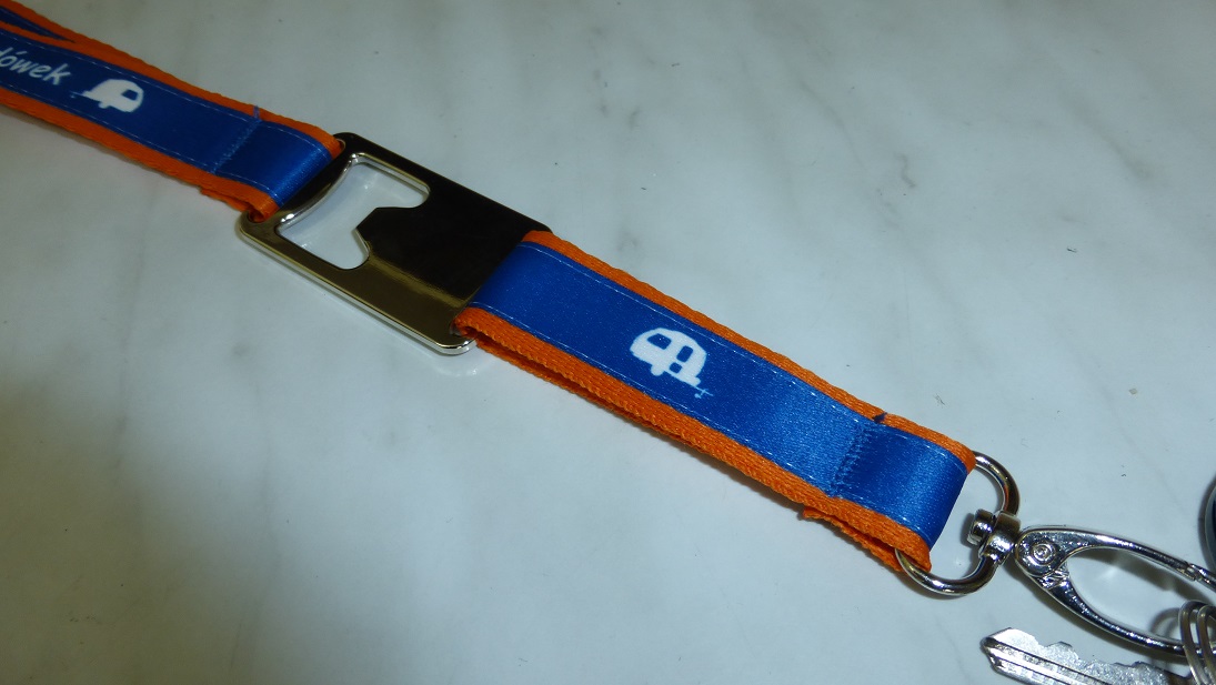 Smycze wykonane są z podwójnej, szytej taśmy szerokości 20mm, z zapięciem typu "krab" oraz jakże przydatnym otwieraczem do oranżady :lol: