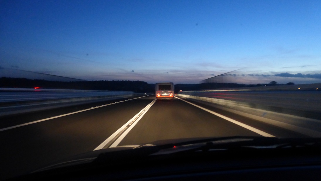 Pędzimy z Przywidza ile fabryka dała bo już się ściemnia a Tomek zniecierpliwiony pogania sms-em