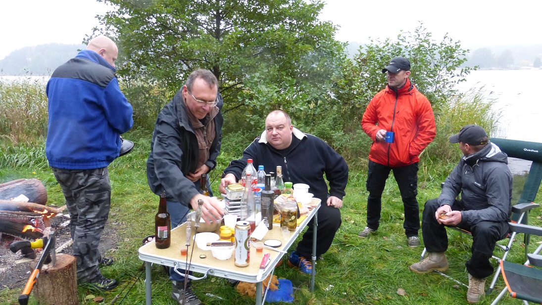 No ten brzeg był do bani, bez woderów albo łódki nie było po co się rozkładać, przynajmniej dla mnie. Gdybyśmy poszli wzdłuż brzegu dało by radę znaleźć dobre miejscówki ale wtedy nici z towarzyskiej strony spotkania bo byśmy się rozpierzchli tu i tam i dupa. A przecież byliśmy razem, łowiący i kibicujący, głupio byłoby ich samych przy ognisku zostawić.