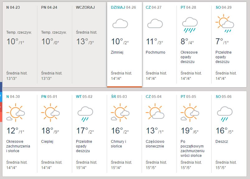 Prognoza coraz lepsza. Szału temperaturowego nie ma ale może chociaż będzie sucho, a to już super.