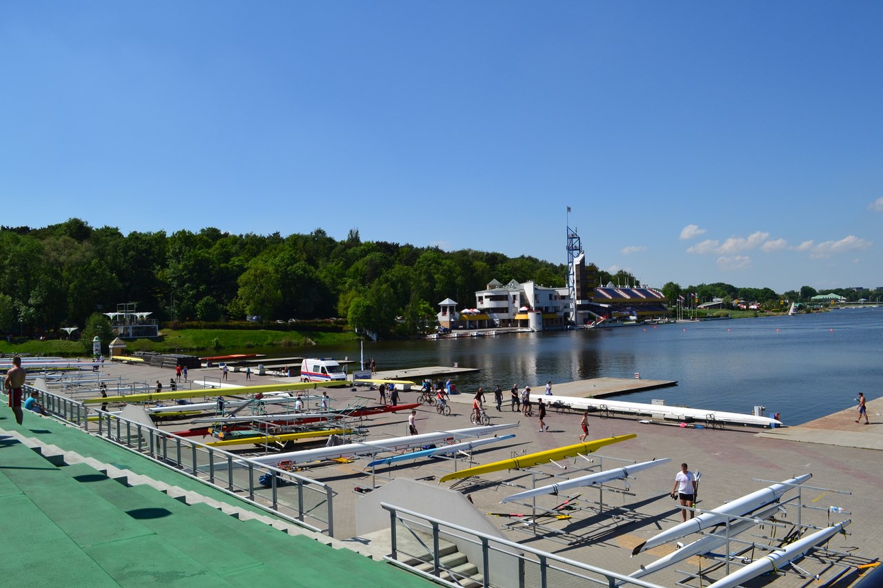 Ostatecznie dla zmęczonych są ławki jak w amfiteatrze i zawsze można posiedzieć i odpocząć, popatrzeć się na jeziorko i ludzi, zawsze coś się dzieje. Choćby treningi wioślarzy.