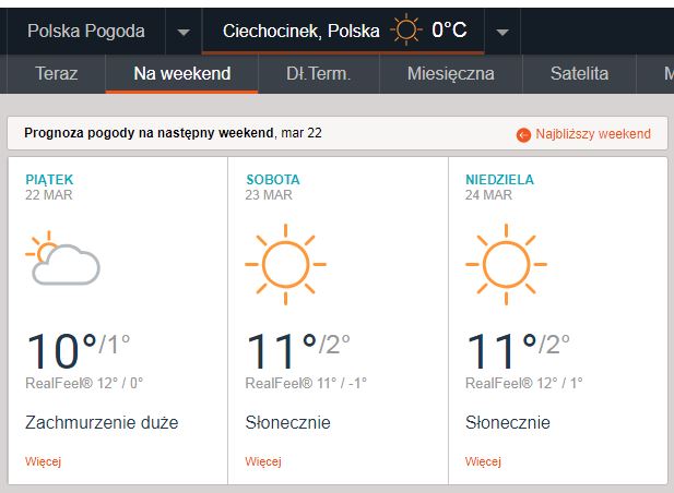 Prognoza pogody na następny weekend. Wygląda na to, że pogoda będzie dla nas łaskawa i sprezentuje nam piękny słoneczny chociaż chłodny weekend.