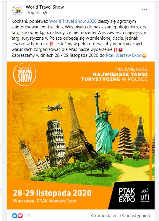 Cóż, jakby to powiedzieć lekko się zmarszczyłem dzisiaj. Chciałem sobie sprawdzić kto będzie się prezentował na World Travel Show w tym roku i ..... okazuje się, że to już jest osobna impreza 28-29 listopada 2020 :o :shock: