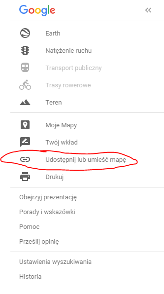 Później wybieramy z menu "udostępnij lub umieść mapę"