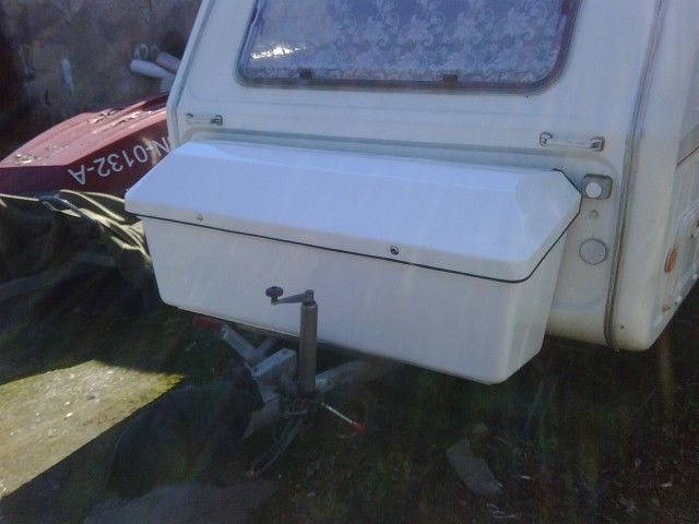 Po ustawieniu na dyszlu wkładamy oryginalny stelaż na butle, trasujemy otwory,wiercimy,przykręcamy. Osobiście polecam rozgięcie na zewnątrz delikatnie pionowych prętów i w to miejsce wchodzi na płasko 11Kg butla gazowa co równa się końcowi kombinacji z napełnianie mniejszych butli. Co dodatkowo zrobiłem?-usztywniłem spod dwoma płaskownikami aluminiowymi ,dałem cienki 2mm płaskownik na całej długości pod zamkami. Trochę mnie rozczarował Niewiadów bo dopiero po założeniu szerokiego kufra na dyszel okazało się ,ze coś jest krzywo. W oryginale źle zamocowany był kabłąk na zawiasy klapy-ale da się to poprawić. Z góry odpowiem dlaczego robiłem to wszystko żywicą polisterynowa, można ja wstępnie formować, poprawiać, podgrzewając opalarką celem dopasowania trochę nad wymiarowych wykonanych kształtek. Reszta widoczna na zdjęciach