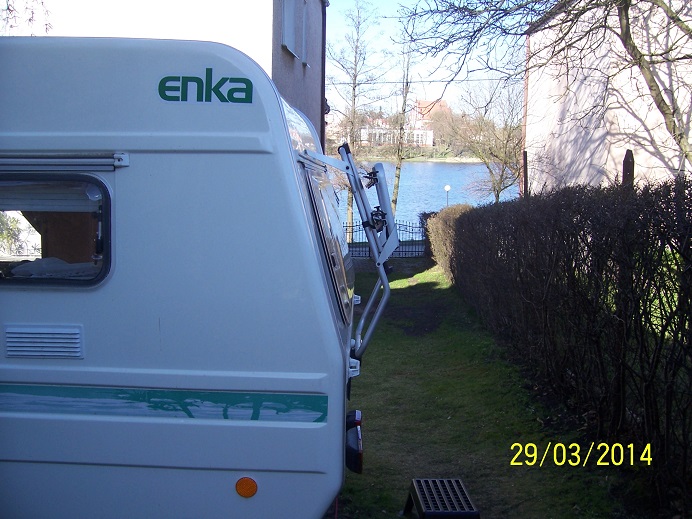 Jak już wczesniej wspomniałem chciałbym "pochwalić" sie pomysłem własnego patentu nie z czystej próżności ale dlatego że do tej pory czerpałem garściami z pomysłów innych osób.Oto bagażnik na rowery mojego pomysłu.Zalety-niski koszt wytworzenia ponieważ rynienki na rowery zostały zakupione na giedzie i pochodzą z używanych dachowych bagażników r owerowych (ok.30 zł ) kilka kształtowników i kawałek rury oraz peszel z pianki do instalacji CO ( 2zł.)Bagażnik jest bardzo stabilny ,montuje sie go w miejsce pojemnika na butle. Nawet otworów nie trzeba wiercić .Ramię ma taki kształt celowo ,ponieważ rowery można wkładać bez jego odchylania (mechanizm taki sprawia że ramię nie jest już takie sztywne) pedały i korby roweru się już o nic nie zaczepiają.Rowery mogą stać bardzo blisko siebie łatwo je wtedy mocować np.za pomoca opasek zaciskowych , nie obcieraja się o siebie i o ramię (pianka) łatwo jest kontrolować sytuację podczas jazdy bo wszystko widać w lusterku wstecznym.Można go stosować zamiennie z pojemnikiem na butle.Wady-oczywiście brak pojemnika, ale ja mam pojemne kombi wieć część bagażu mogę tam zmieścić, a butle montuje we wnetrzu przyczepy w szafce pod kuchenką.Skoro w domu można tak montować to czemu w przyczepie by nie.Wystarczy taka 2,5kg o ile ktoś nie ma trumy bo pewnie wtedy to za mało.Pozdrawiam może pomysł sie komuś spodoba.Zdjecia i opis można zamieścić w dziale zrób to sam ale to juz decyzja moderatora.