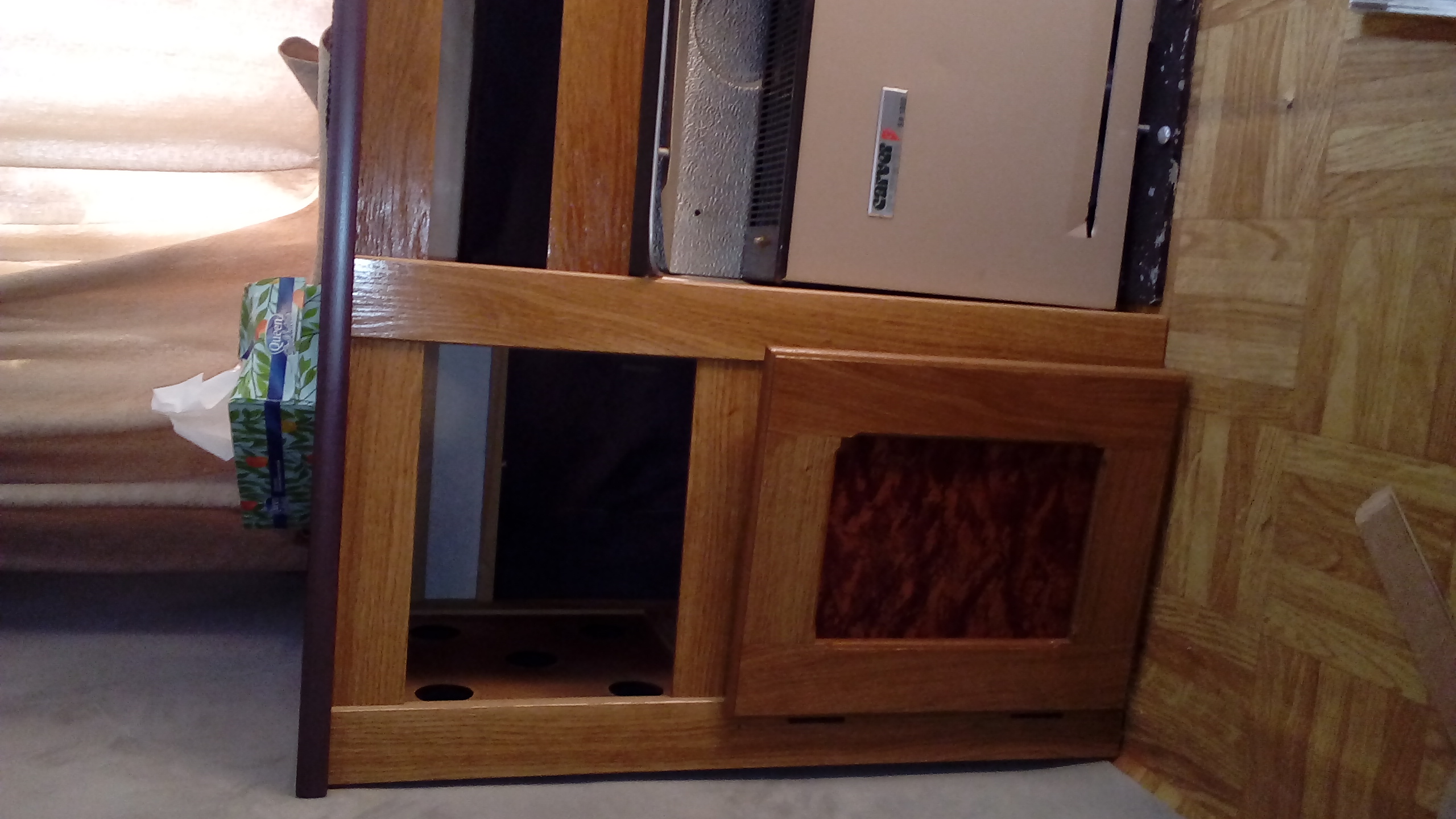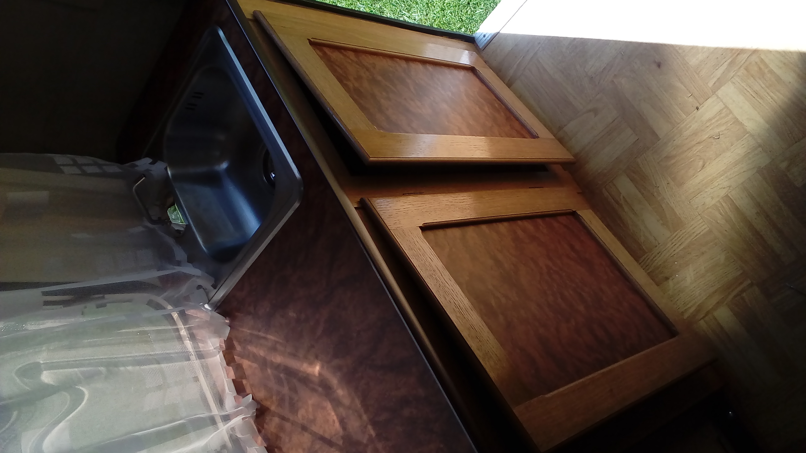 Mebli niestety nie ważyłem. Ważyłem ich elementy jedynie i jak złożę już dolne szafki pojadę na złomowisko, jest złomowisko obok mnie, tam gdzie kręcili program na Discovery i jest tam ta Pani Sonia ( to jakieś 5 km ode mnie, w linii prostej 2 km ) Zważę całą przyczepę na tym złomowisku i wtedy będę miał jakiś odnośnik. Ja zdemontowałem szafki fabryczne i łóżko oraz dwa materace. Wiem, że to co zdemontowałem, nie jest cięższe od tych mebli, które robię. (szkielet mebli trzymałem w jednej ręce i wnosiłem do przyczepy sam )