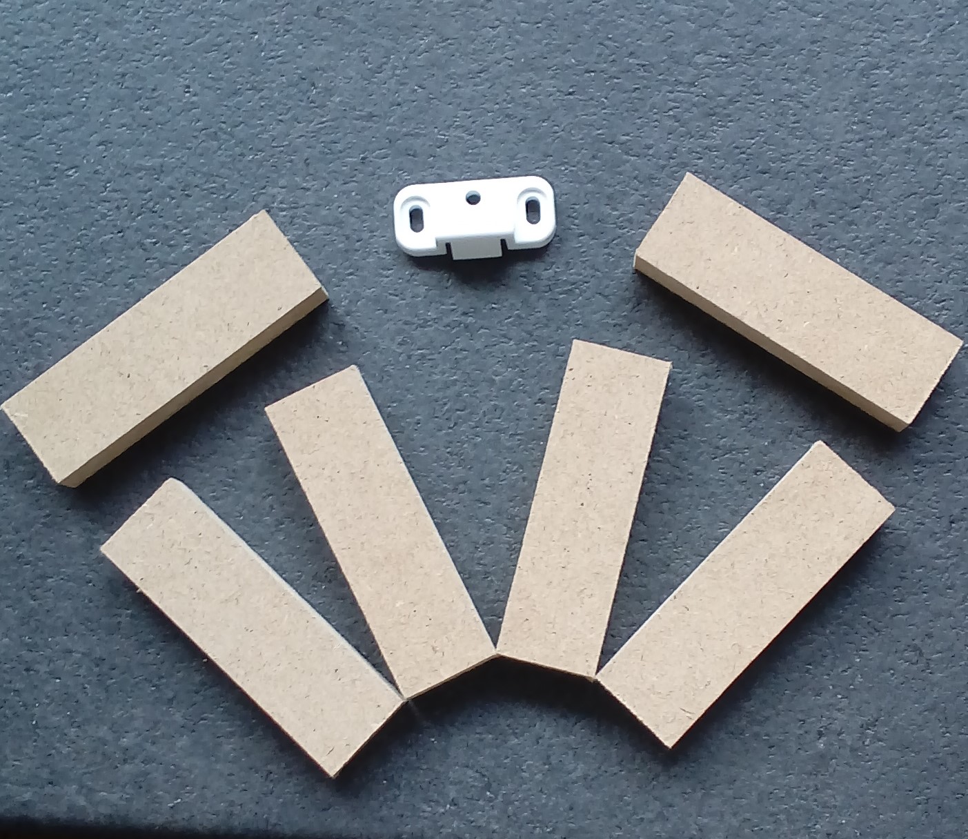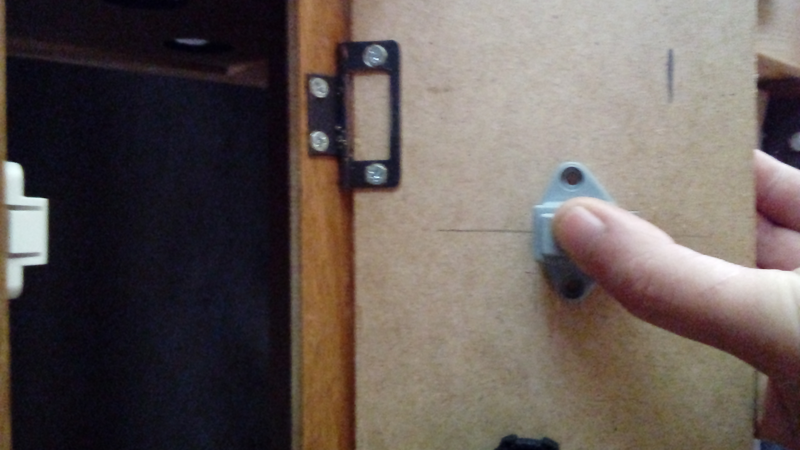 Znalazłem parę deseczek na podkładkę do zatrzasków, trzeba to podkleić od wewnątrz szkieletu mebla. Nie będzie to widoczne od zewnątrz.