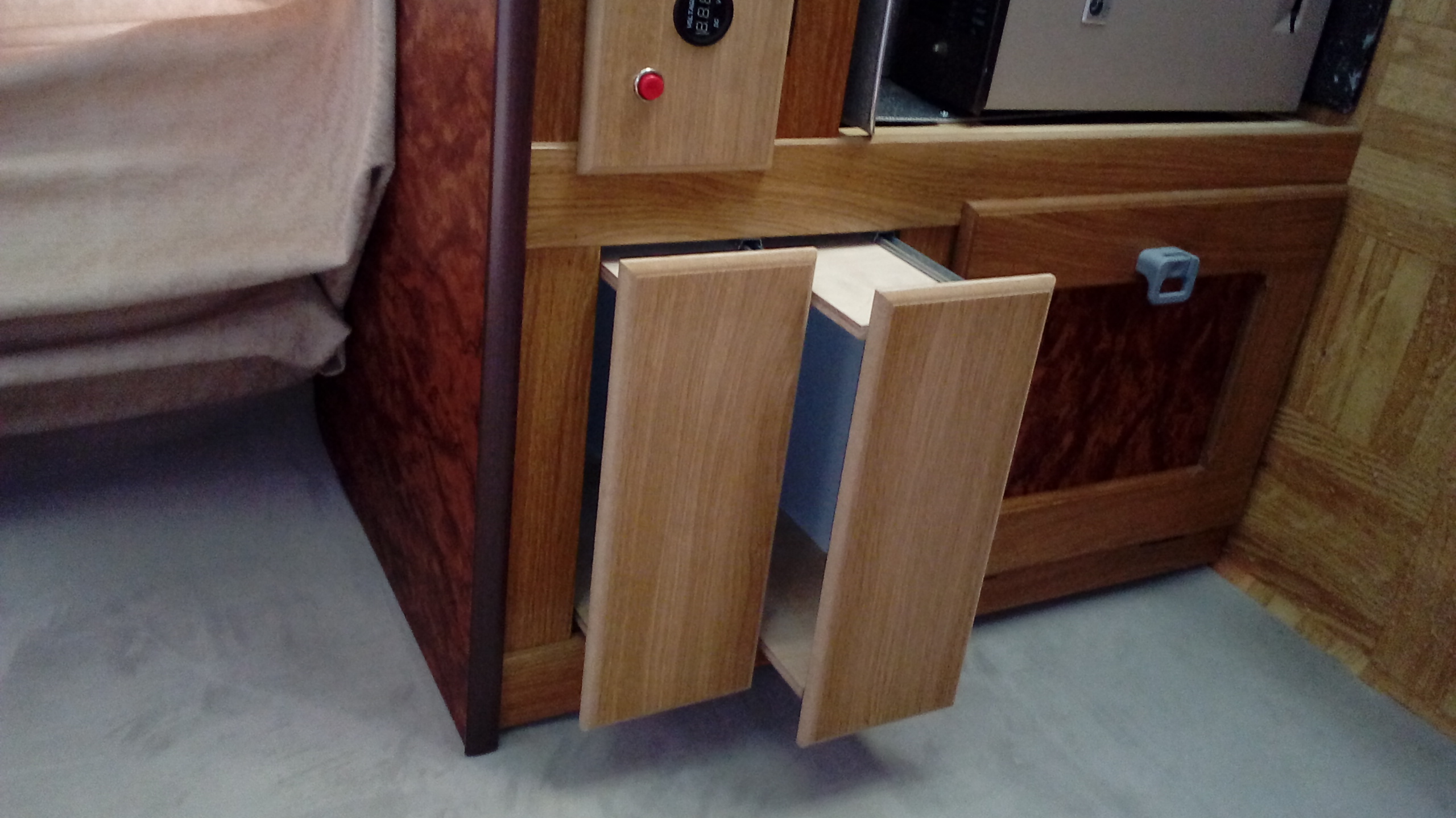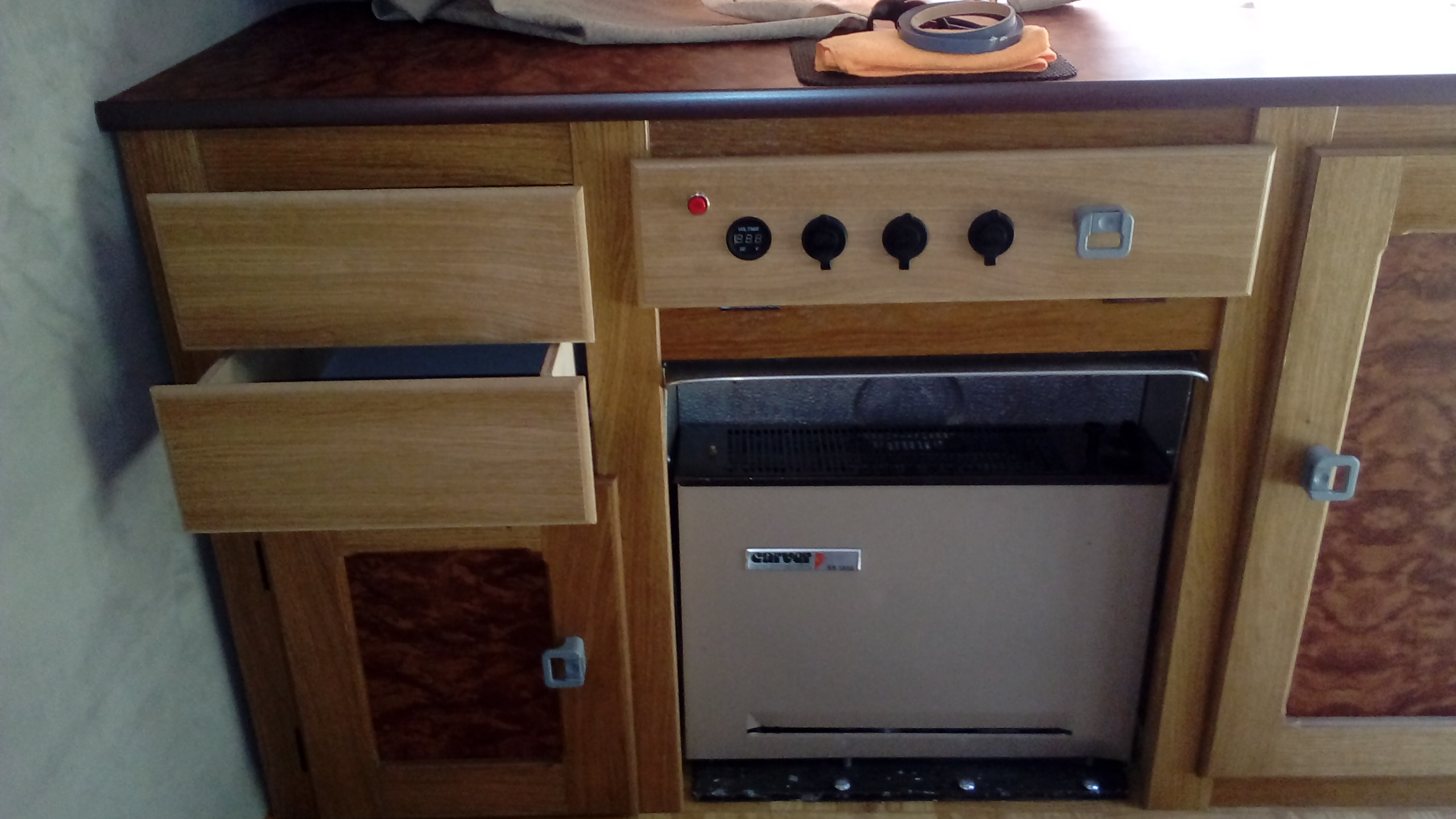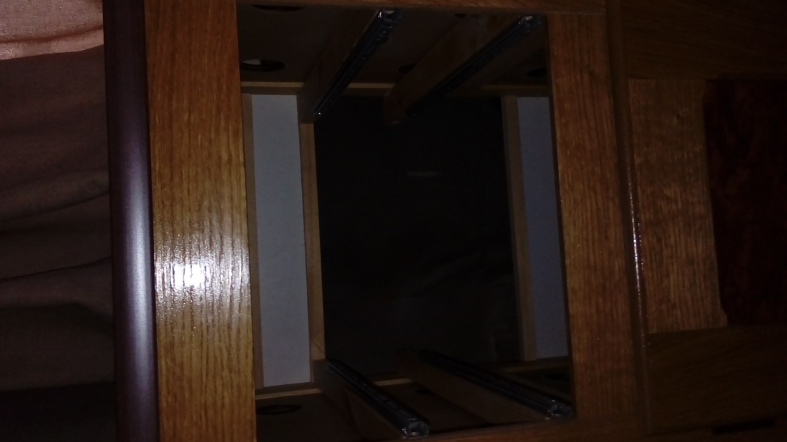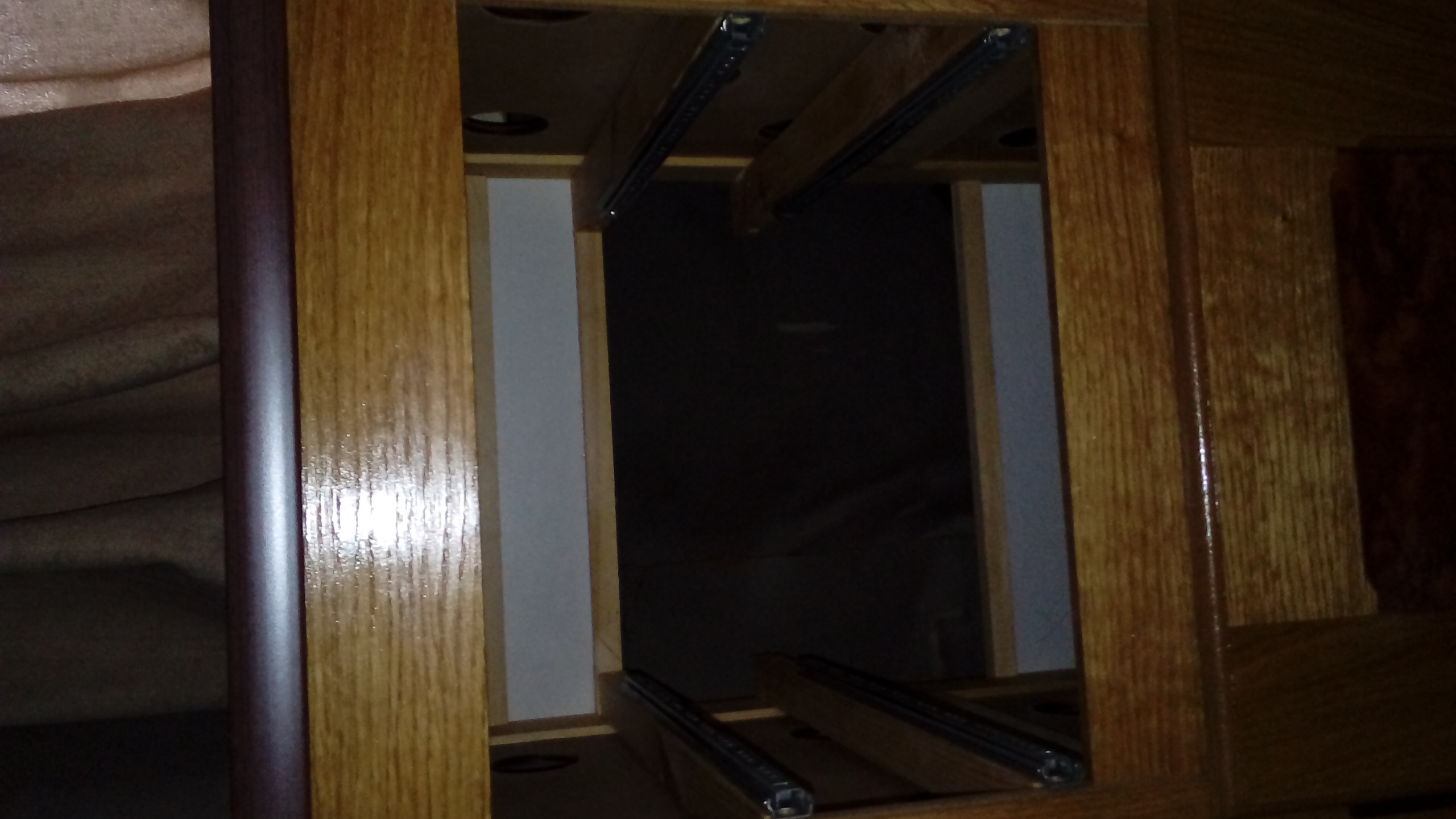 Teraz jest dobrze, czekając na zamki okleję szuflady w środku cienkim filcem, uniknę w ten sposób obijania się przedmiotów schowanych w szufladzie podczas jazdy.