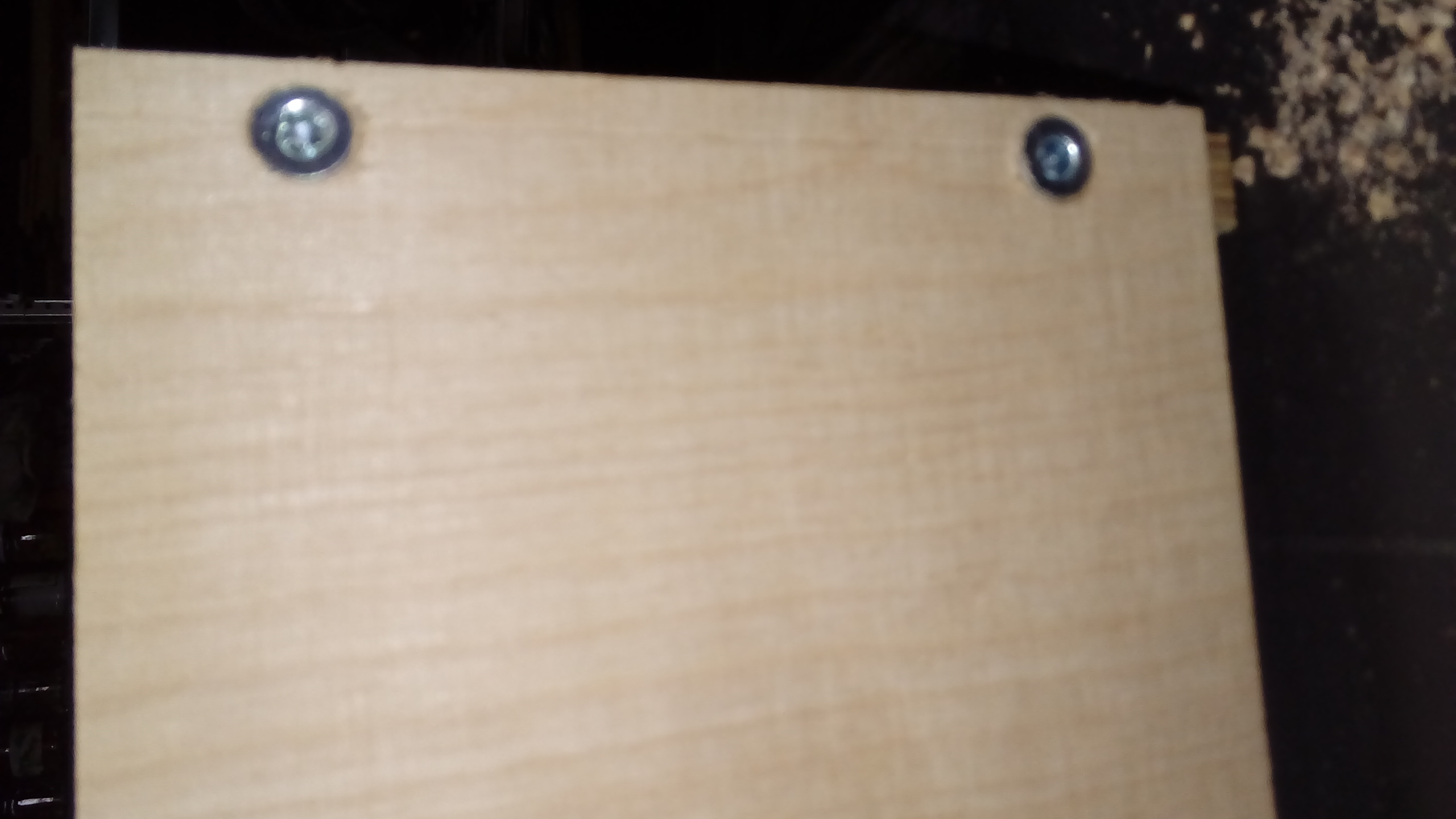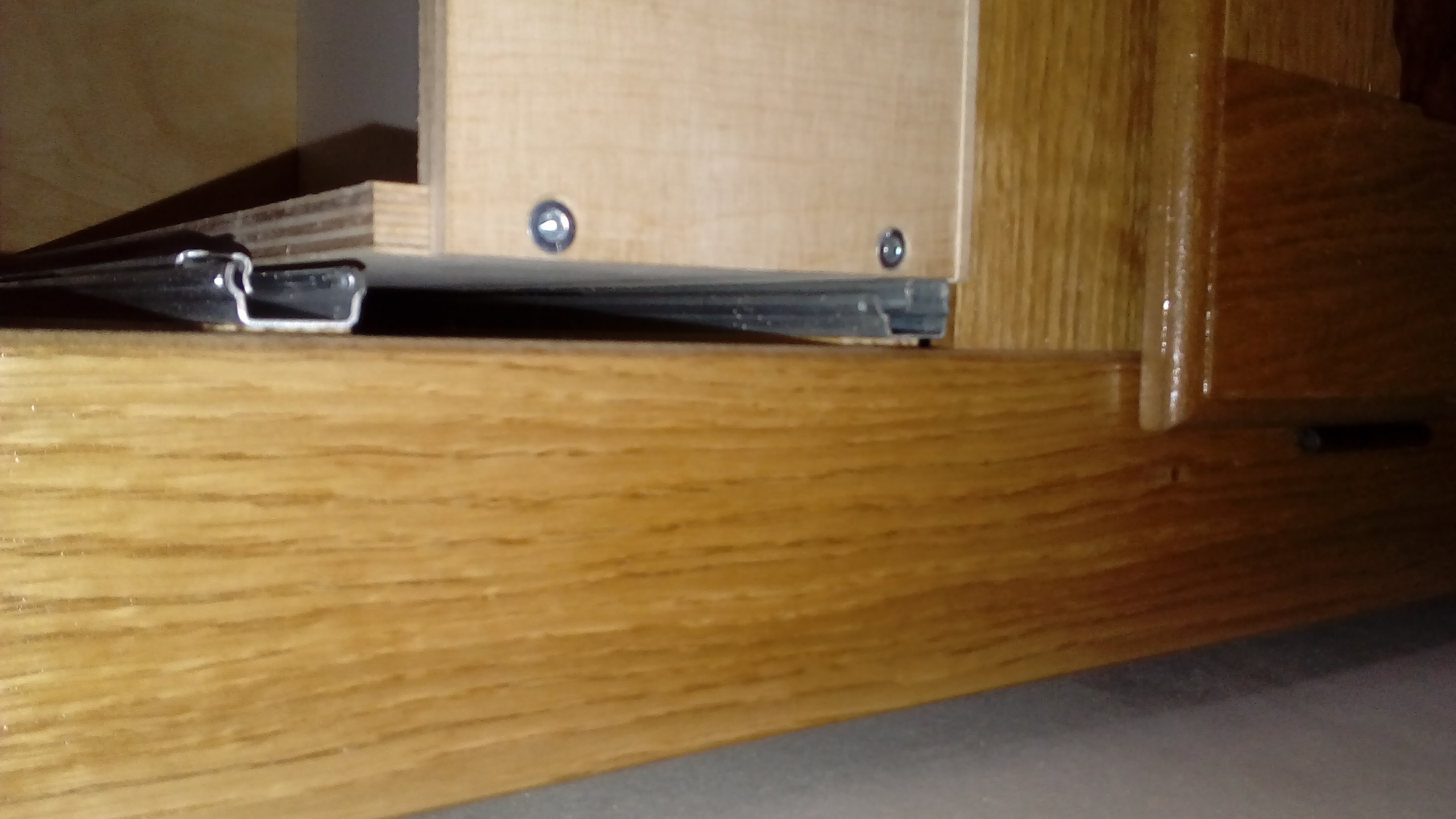 Jak wszystko zrobimy jak trzeba, korpusy szuflad położone jeden na drugim, wszystko pasuje. W rogu widoczny wkręt od środka