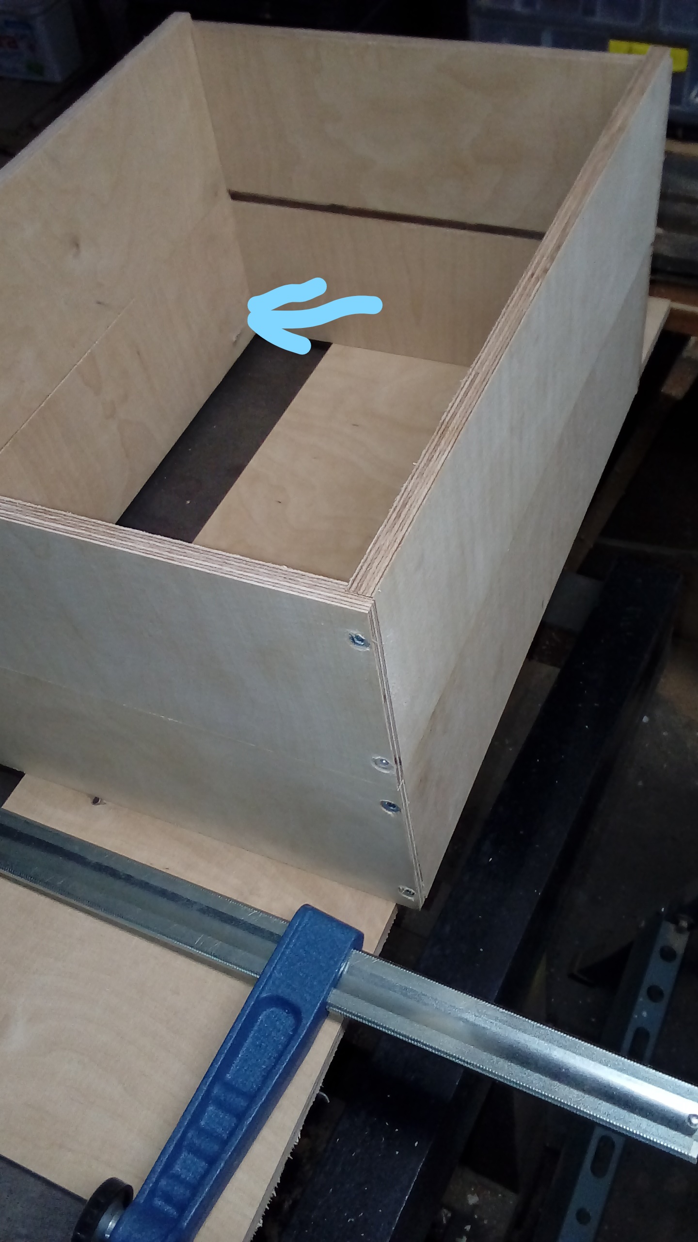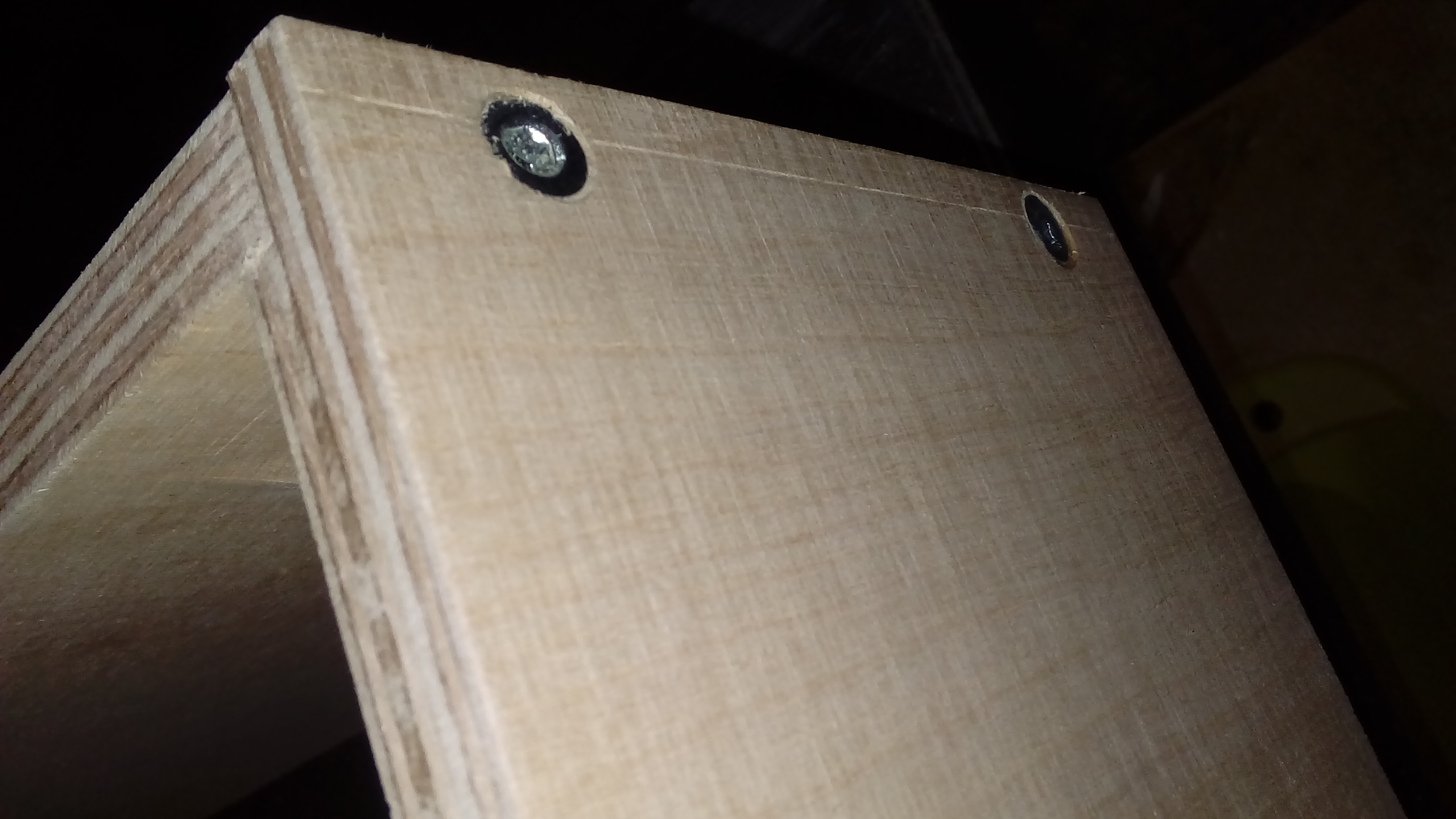 Boki sklejki zrobiłem na zakładkę ( najszybsze połączenie ) oraz skręciłem małymi konfirmatami.