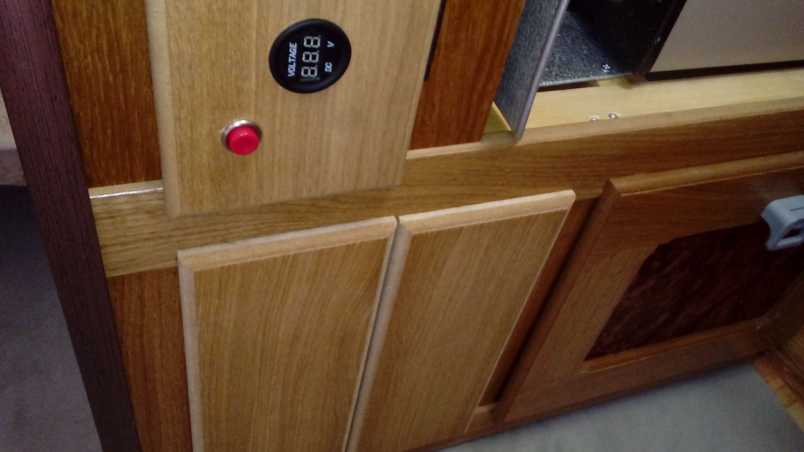 Kolejna rzecz to zrobiona instalacja sprawdza się znakomicie i jedynie muszę dołożyć tablicę bezpieczników i same bezpieczniki po 10 A na każde gniazdo ładowania. Wyświetlacz po naciśnięciu czerwonego przycisku wskazuje prawidłowo stan naładowanego akumulatora ( sprawdzone wartości miernikiem wysokiej klasy dokładności ) przez wzgląd na jedno miejsce po przecinku woltomierz zaokrągla pomiar i uważam, że takie wskazania są wystarczające. Odczyt naładowanego akumulatora na wyświetlaczu zabudowanym w desce wskazywał 13,2 V a miernik już bardziej dokładny wskazał napięcie 13,19 V