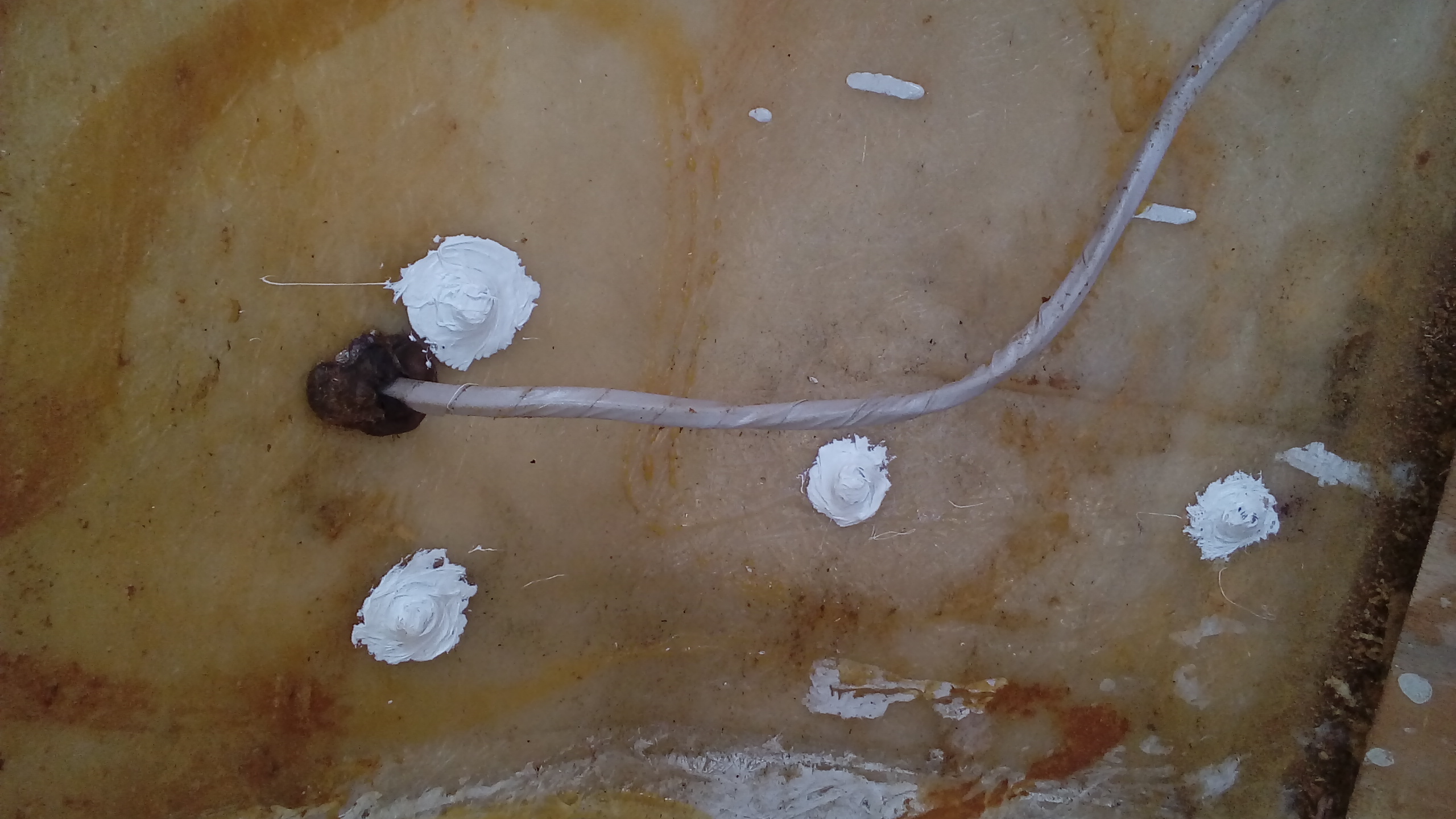 Przyszedł czas na uszczelnienie wszystkich śrubek i nakrętek w środku przyczepy. Potem by było uciążliwe lub nawet niemożliwe po wyklejeniu ocieplenia.