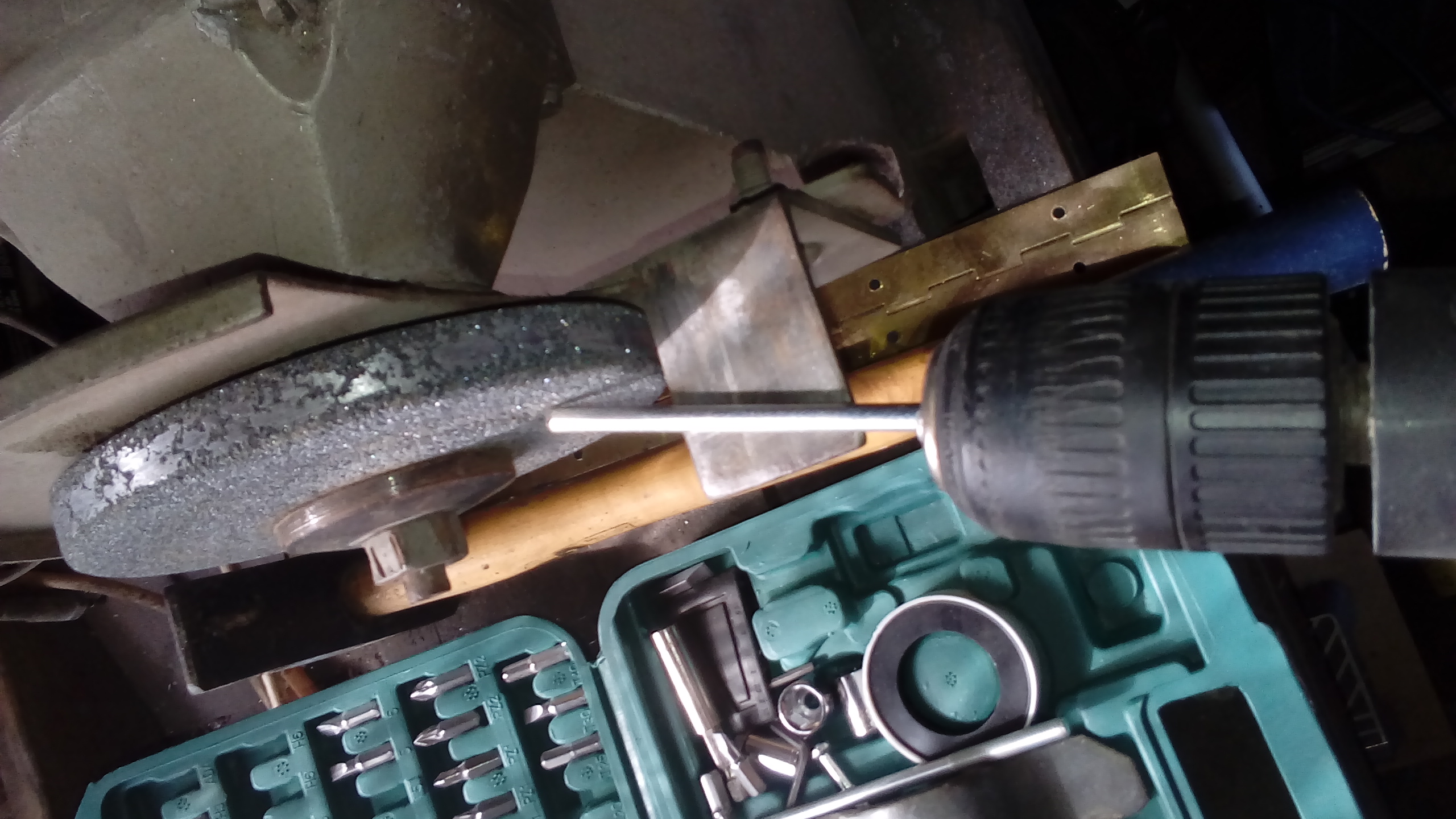Teraz musiałem zaostrzyć dwa pręty przy pomocy wiertarki i szlifierki.
