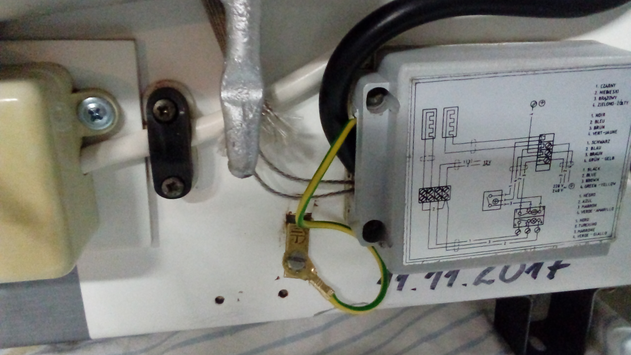 Ważnym elementem jest prawidłowe uziemienie lodówki. Przewód żółto zielony.