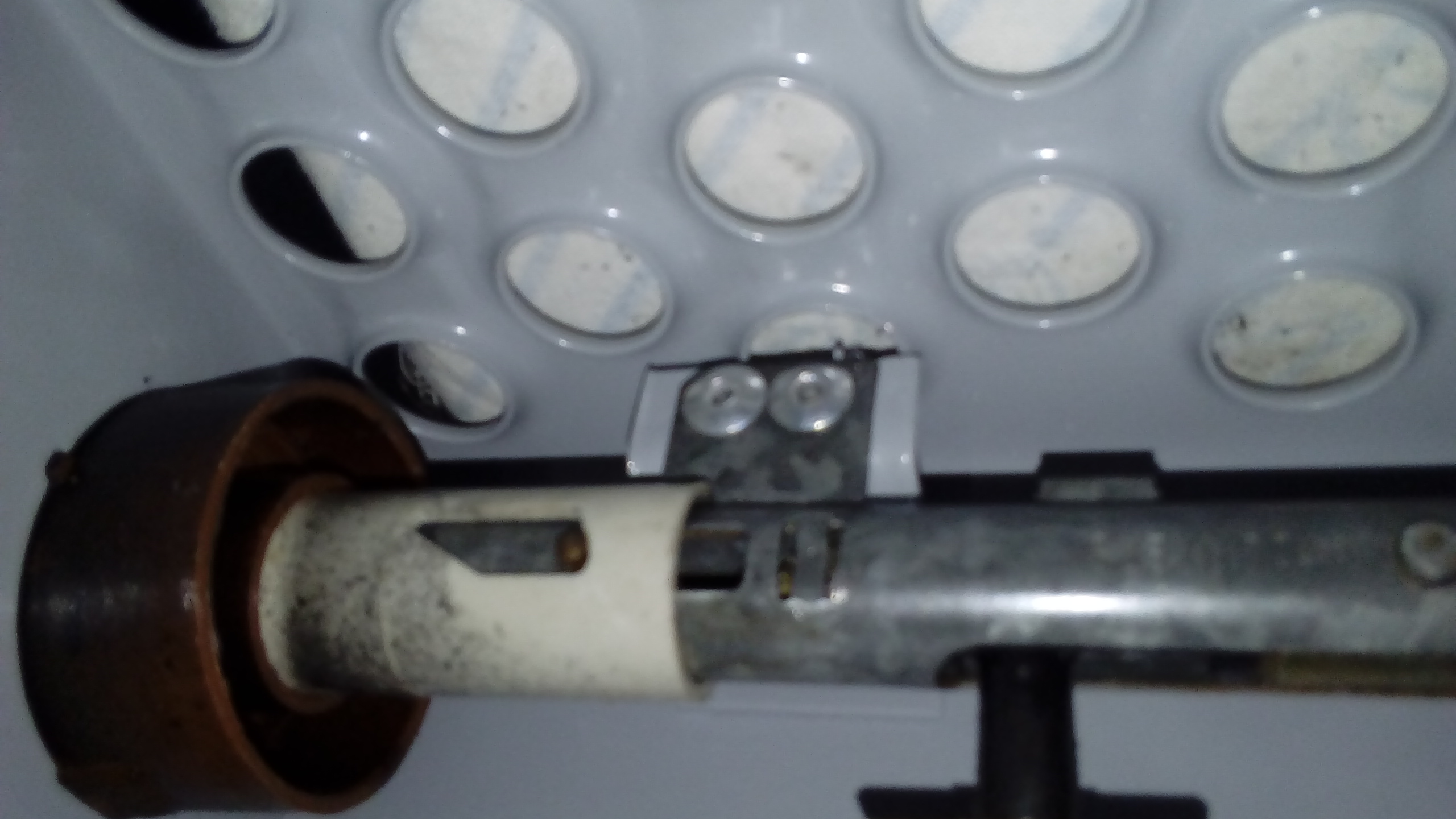 Miejsce starego wkręta, zastąpiłem spinką stalową by lepiej trzymało w starym otworze.