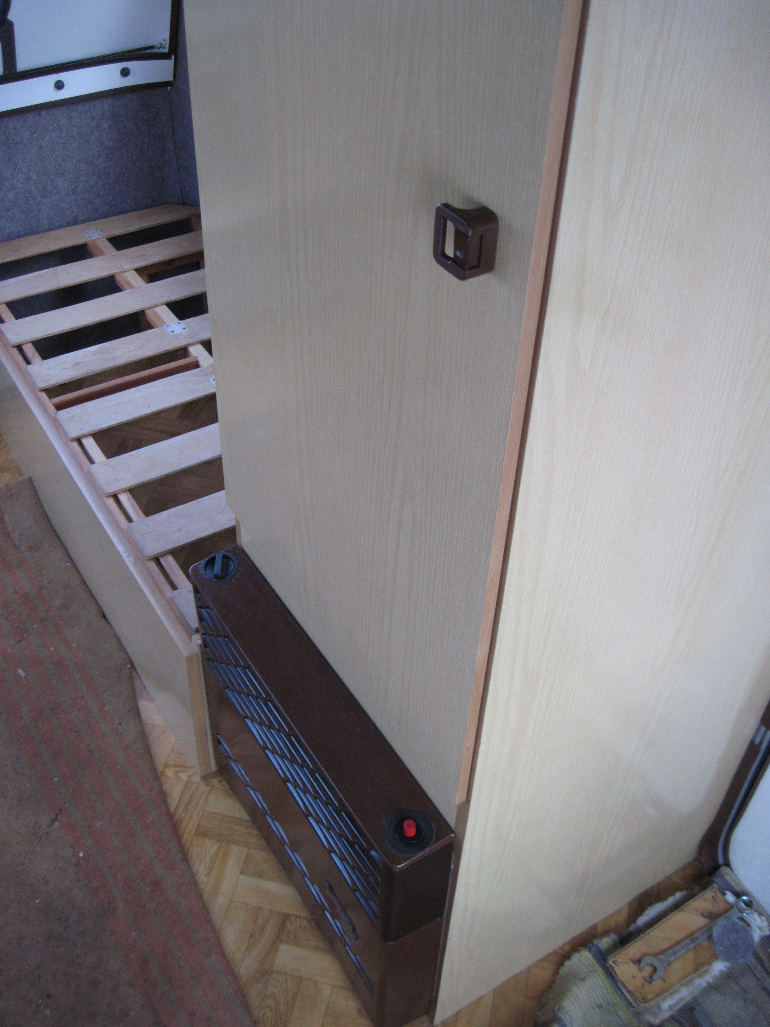Po przymocowaniu pieca do podłogi, przyszła pora na sprawdzenie czy będzie pasować obudowa, niestety nie zrobiłem zdjęć z montażu tylnej osłony pieca, ale osłona pasowała bez jakichkolwiek przeróbek, po prostu ją wstawiłem i przymocowałem do szafy wkrętami, pasowała idealnie jakby stąd była.