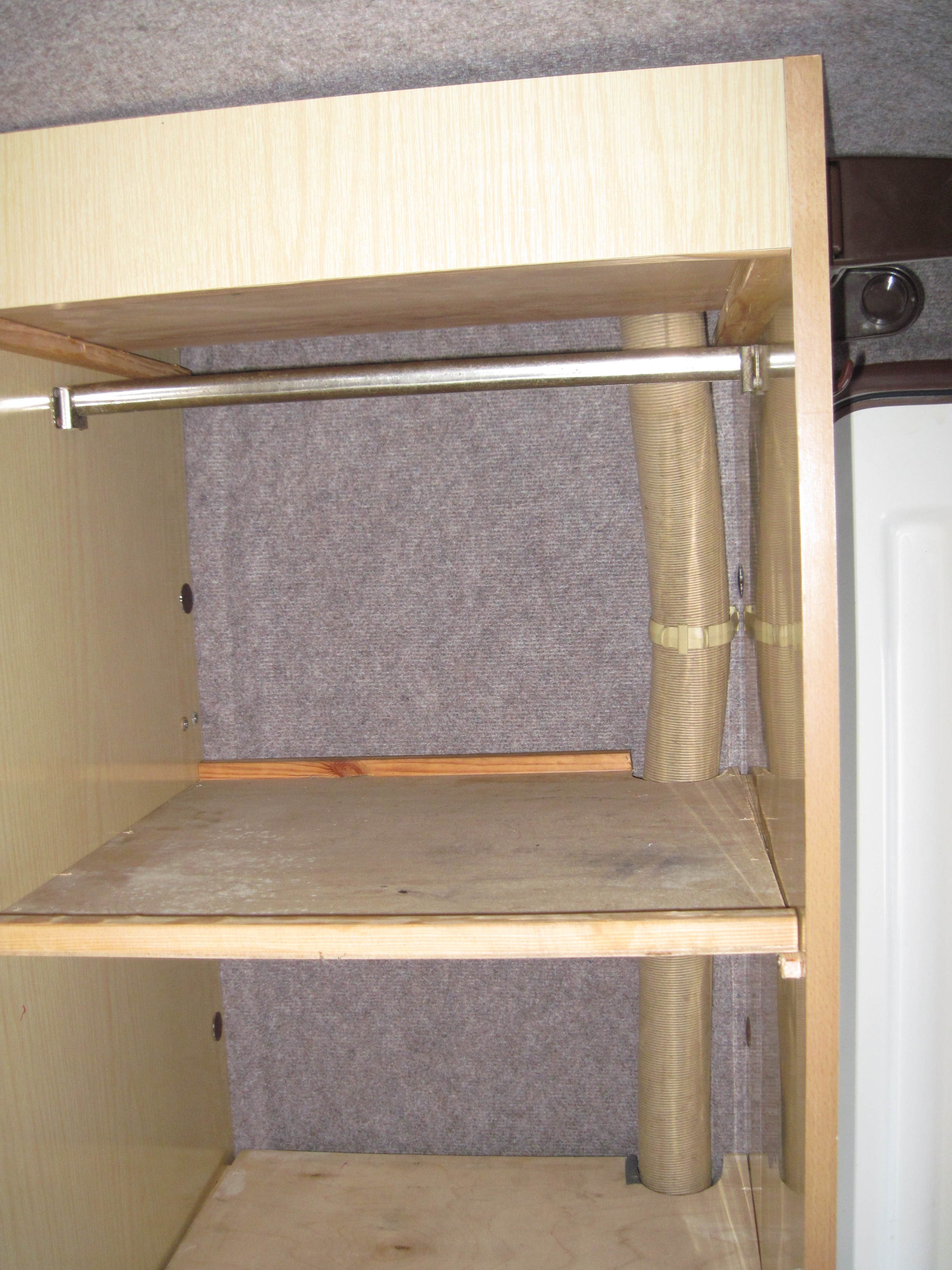 Kolejnym krokiem jaki trzeba było wykonać było wycięcie otwornicą fi61 dziury w dachu na kominek i w półkach szafy na rurę kominową