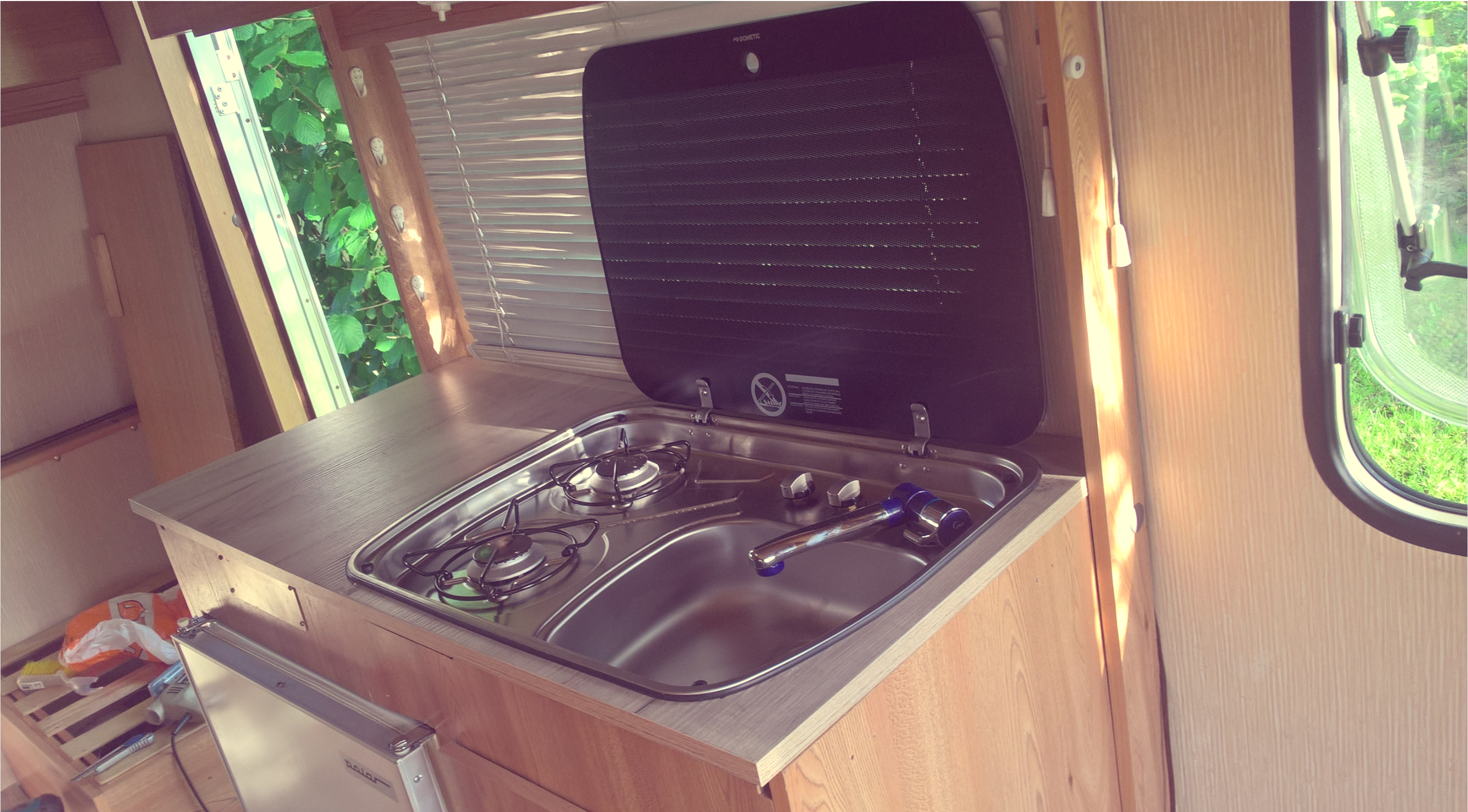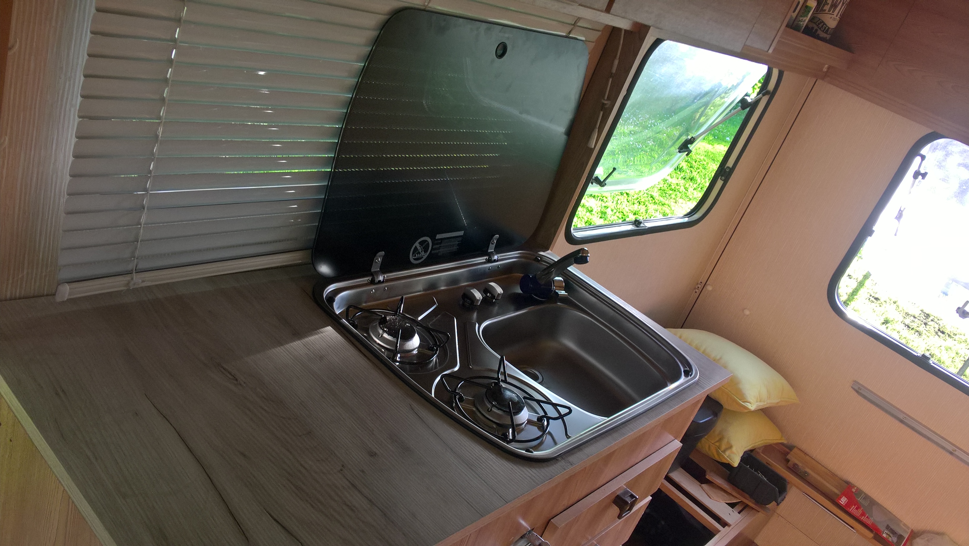 Ponieważ poprzedni właściciele zdemontowali kuchnię (kuchenkę i zlew), instalację gazu, instalację wody, musieliśmy to wszystko zbudować od nowa. Najwięcej kłopotu sprawiło mi ustanie czy inst.gazu propan - butan może być oparta tylko na elastycznym wężu gumowym, czy też musi być (jak w większości przyczep) zbudowana z miedzianych rurek w otulinie gumowej. Ostatecznie zdecydowałem się na wąż gumowy 8mm na całej długości. Butla gazowa, propan/kompozytowa. Jednocześnie zamontowaliśmy instalację wodną - a tą chwilę tylko zimna woda (jest plan na przyszły rok - montaż boilera, oraz prysznica) i prądową (12v i 230v). Walczymy dalej :)