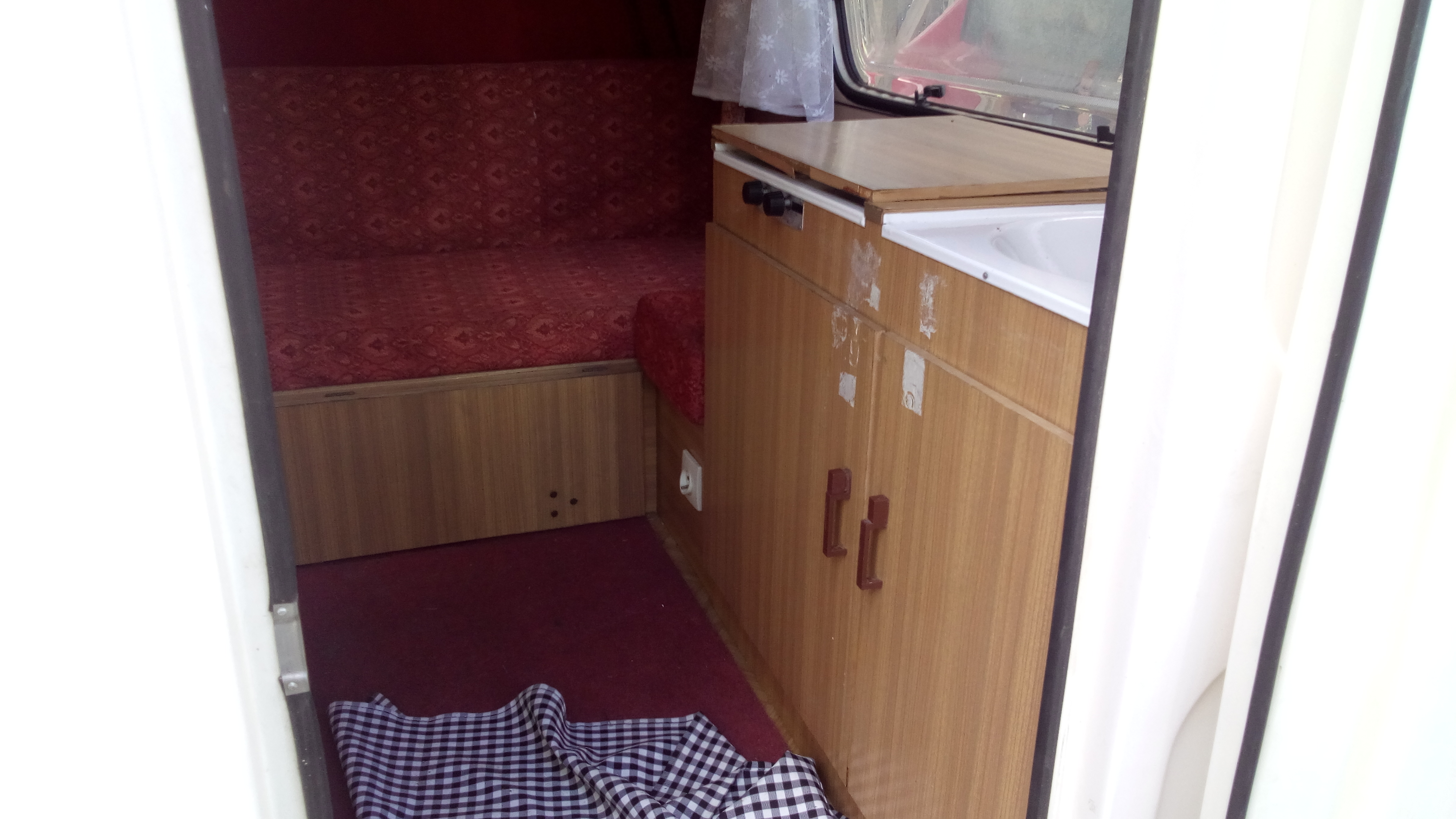 Następnie zerwana została cała tapicerka. Tu akurat żadnych trudności nie było, nawet w dużej mierze sama odeszła :-P. Trochę wkurzająca była zmurszała, lepiąca się gąbka. Po tapicerce przyszedł czas na podłogę. Zdrowa sklejka, więc później wróci na swoje miejsce. Wcześniej gumoleum oczywiście został wyeksmitowany na zewnątrz.