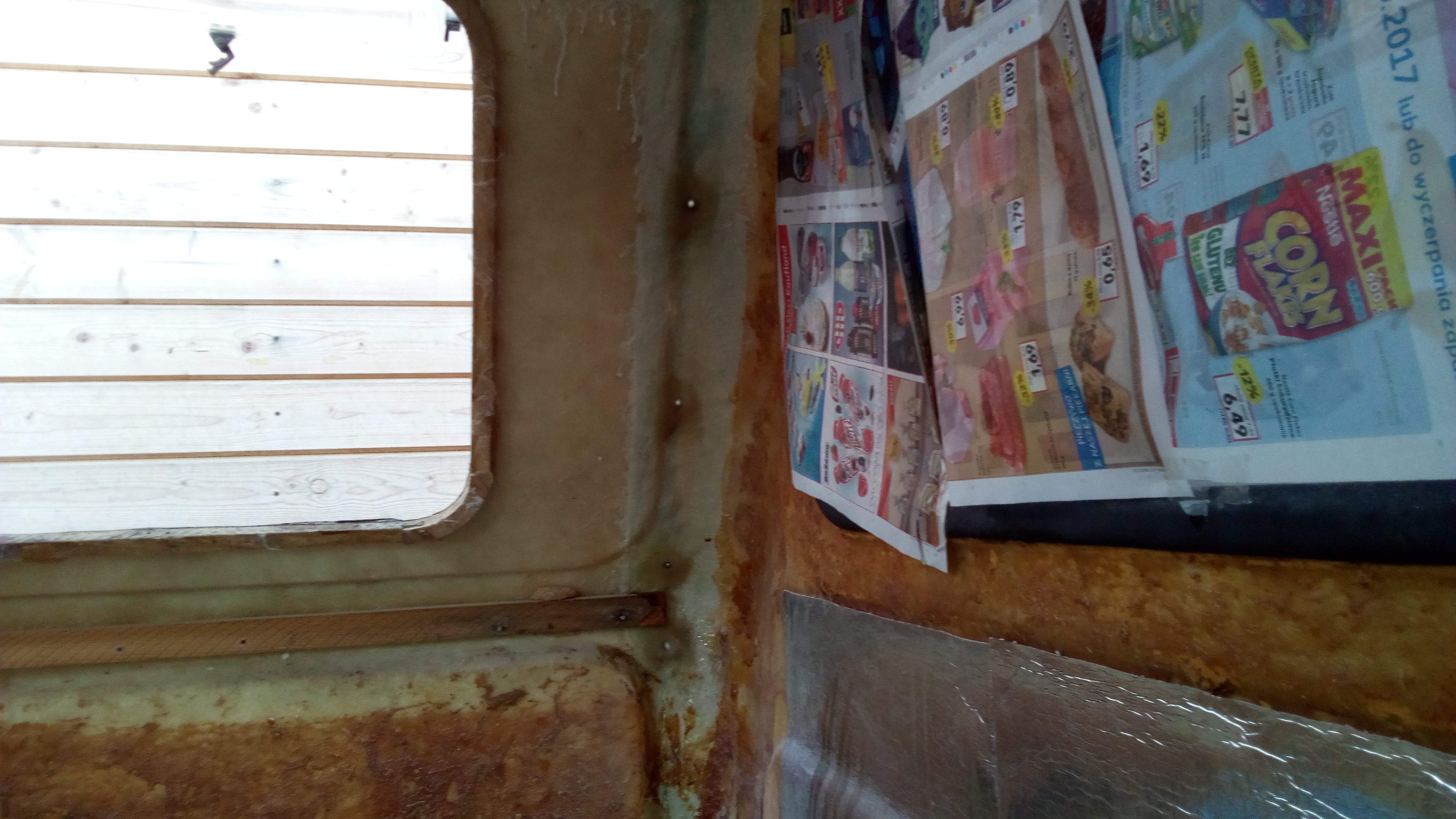 Wyklejone jest prawie wszystko, oprócz ściany przy drzwiach z przodu, bo będę jeszcze wymieniał zawiasy w drzwiach. Także nie dociągnąłem jeszcze ocieplenia przy oknach - bo będą wymieniane uszczelki. Wtedy pojadę do krawędzi z ociepleniem. Nawiasem mówiąc wymieniam wszystko co gumowe w cepce, kliny, zakończenia przy listwach okiennych, uchwyty manewrowe.
