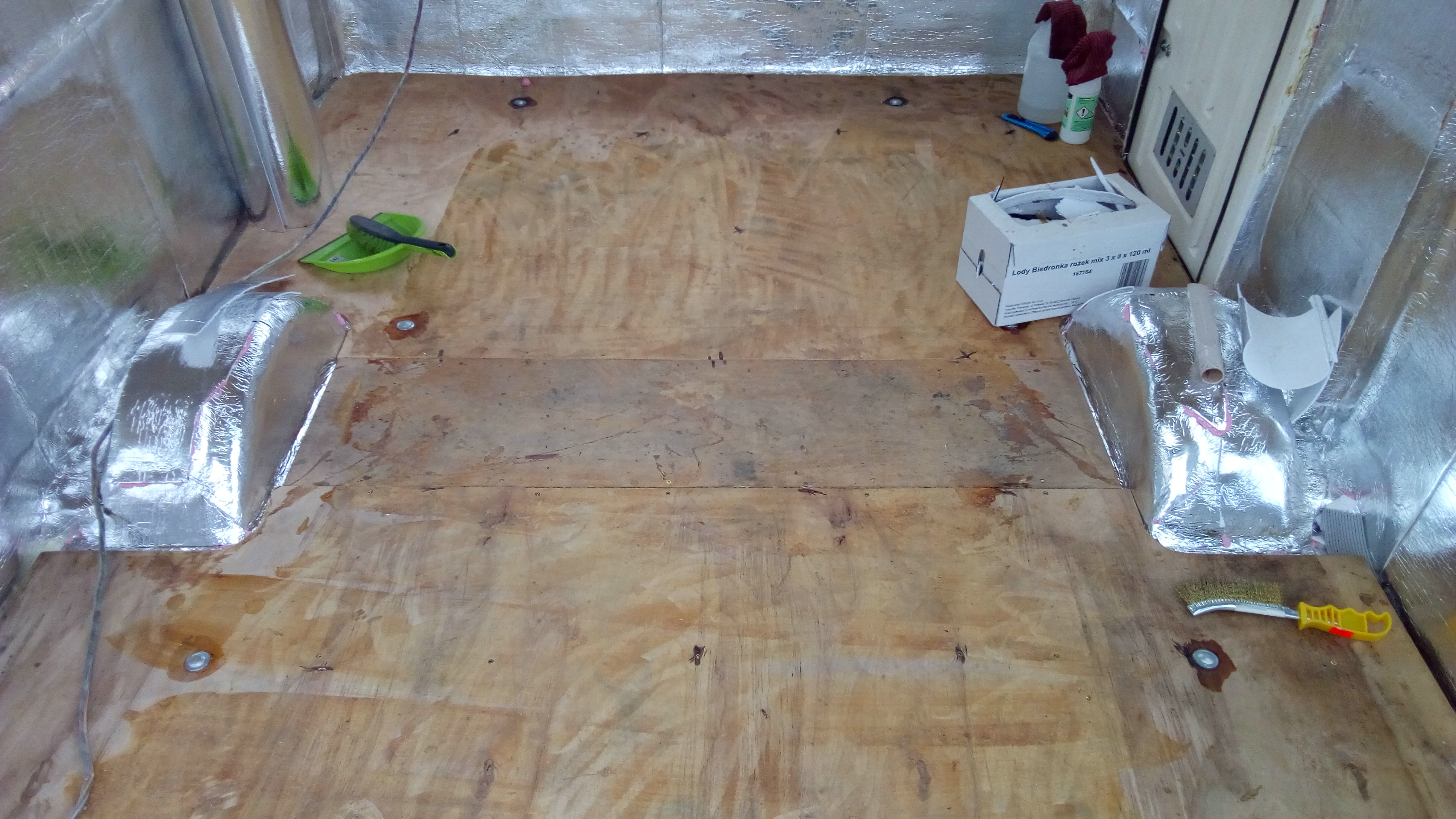 Jedna część podłogi jest już przykręcona, środkowa na razie luzem. Przód do ogarnięcia, bo zostało się pasek 10 cm podkładu podpanelowego jeszcze przykleić, na to ekran zagrzejnikowy, a zostało się bo miałem do zalaminowania dziurę po gaz rurce. Nie zrobiłem tego wcześniej, bo skończyła się żywica ... i tak jedno trzyma drugie ;-).