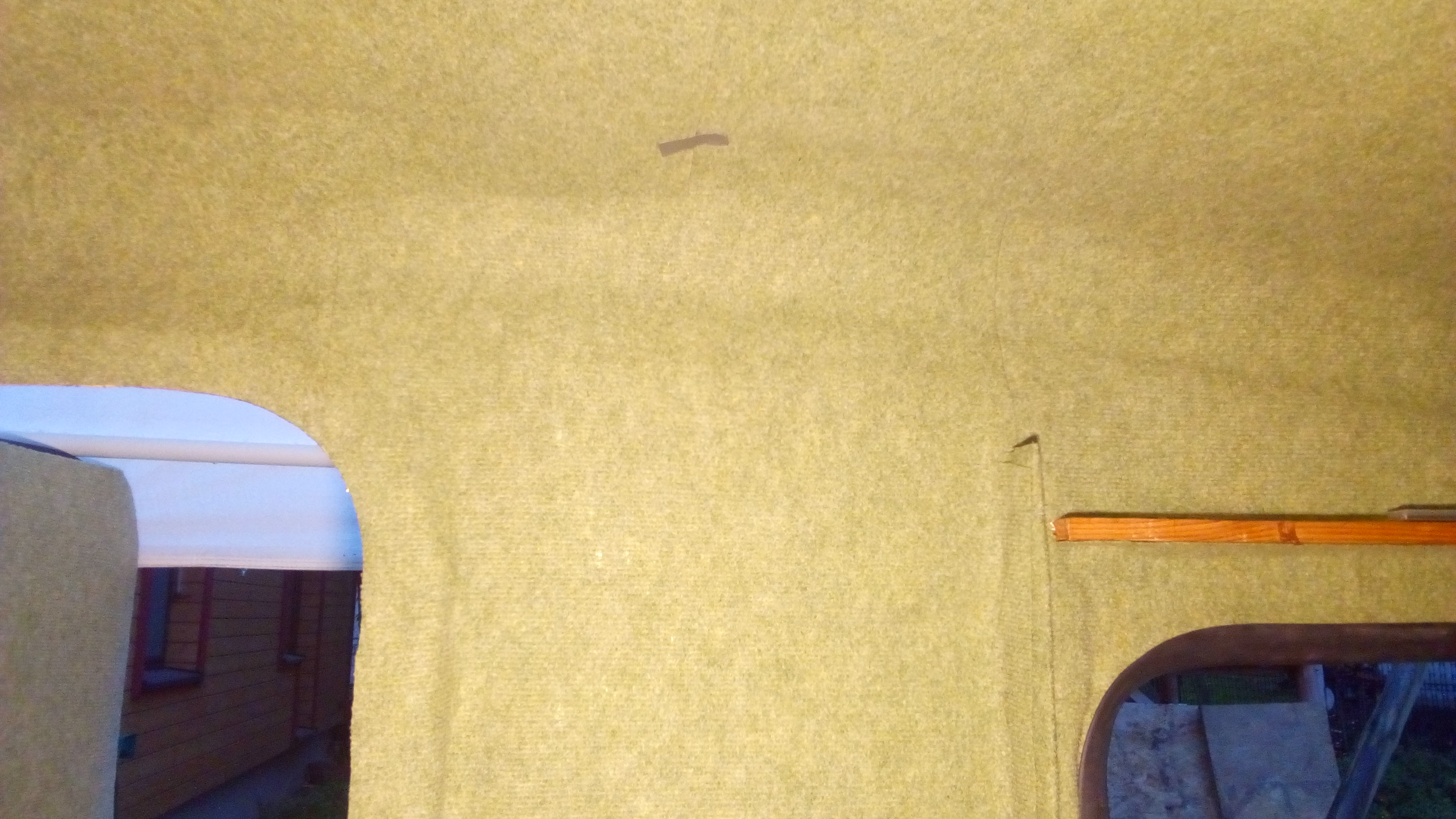 Ale miałem też akcję, jak przyskąpo obciąłem nadmiar półksiężyca (ta część nad wlaminowaną listwą na bocznej ścianie). Ok, to najwyżej połać na dach dam szerszą. Mierzyłem ze 30x i albo mi z jednej strony brakło albo z drugiej nie pasiło. W końcu po ostatecznym docięciu, klejeniu już, zaczęło mi uciekać w bok! No ale na szczęście wszystko poszło ok. Bo o zerwaniu i poprawieniu wykładziny można zapomnieć. Wykładzina się rozciąga i ponownie nie nada się do użytku. A jak porwie ekrany to już w ogóle kopa! Trzeba uważać. No i w kontekście tego nie ryzykował bym docinek na styk. Wyjątkiem jest mój szyberdach, bo nie mam wykładziny w jednym kawałku. Kupno pasa szerokości dachu o długości 3 czy 4 m to słaby biznes, więc dlatego tak. A jak się nie uda operacja klejenia w ten sposób, to sam szyber łatwiej zrobić od nowa niż gdzieś jakieś newralgiczne miejsce w przyczepce. Tak ja to widzę.