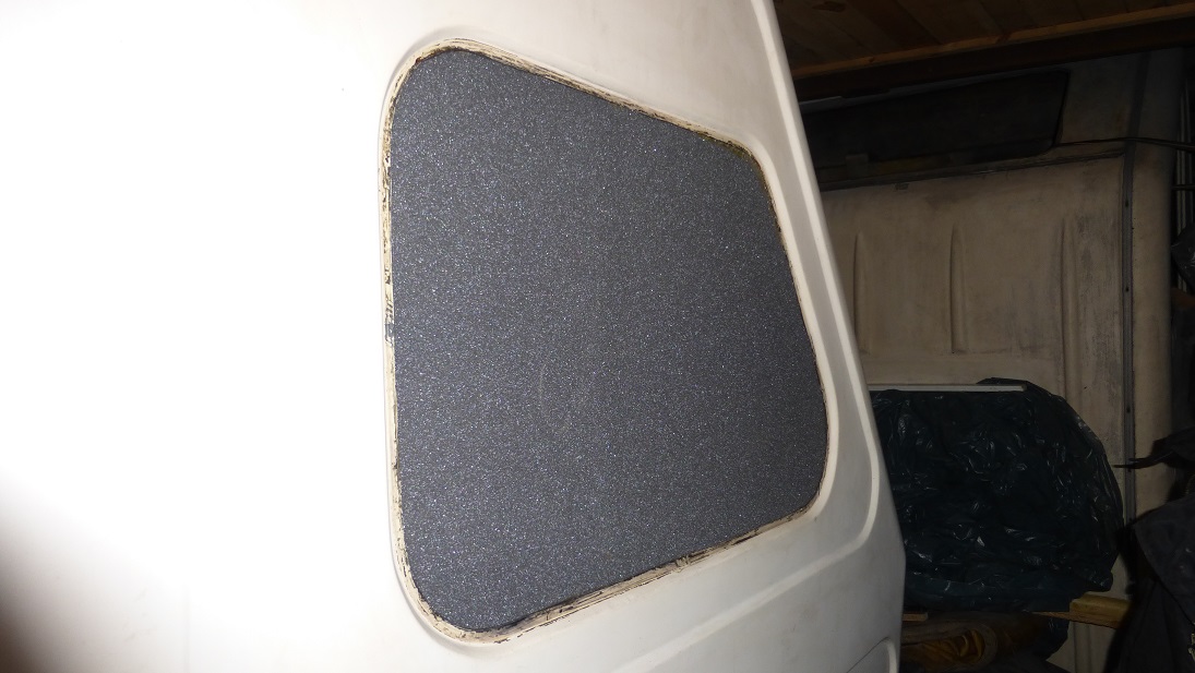 Jeszcze przed wyklejaniem tapicerki był lekki problem z krawędziami otworów na które włazi uszczelka. Miejscami były bardzo cienkie a nawet częściowo wykruszone. Poprawiłem je laminując od wewnątrz paseczki z maty co nadało krawędziom prawidłowy kształt i wytrzymałość.