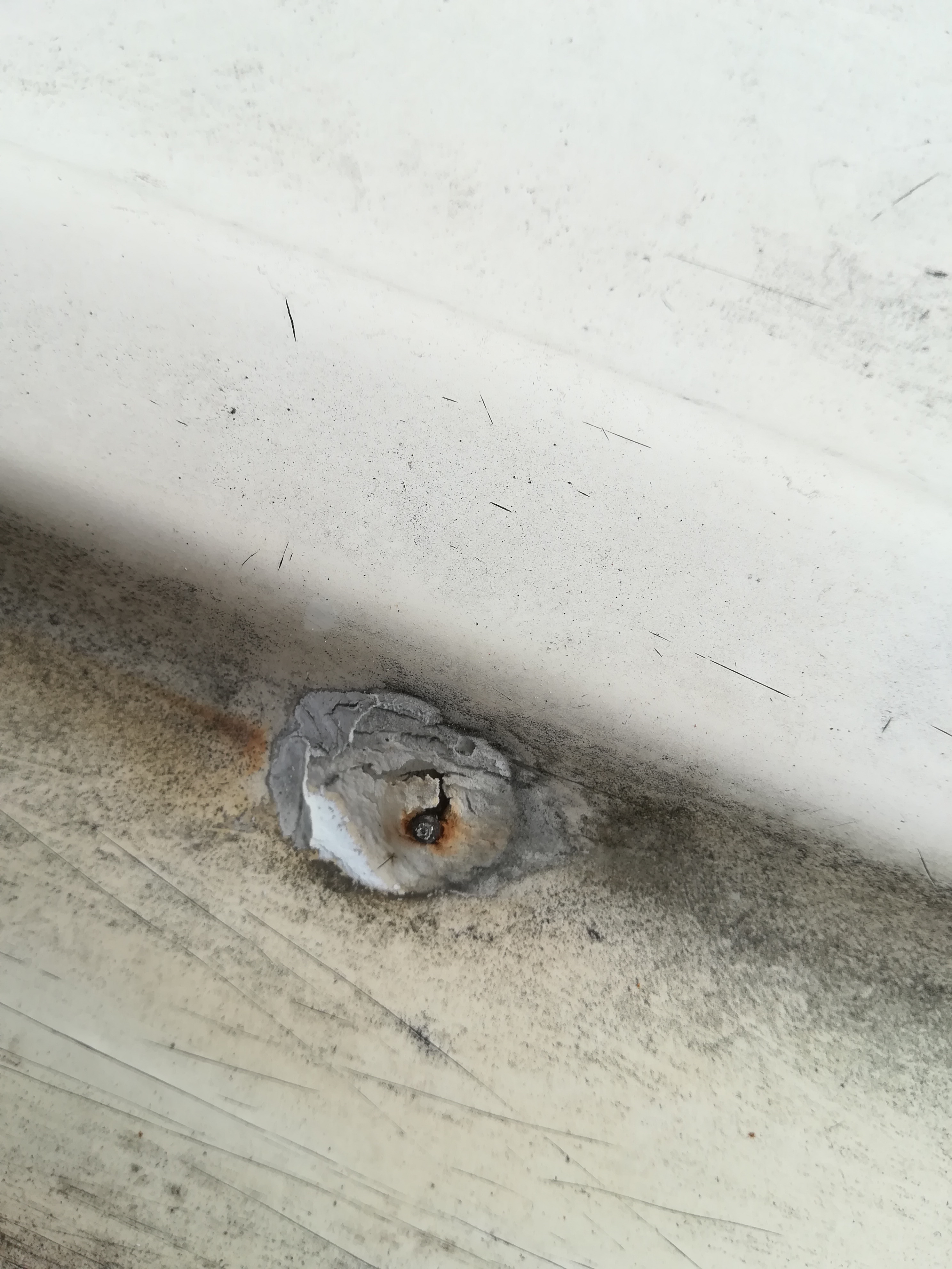 Zabrałem się za demontaż galanterii okiennej i wyrywanie betonowych uszczelek. Wszystkie śruby kręciły się jak wściekłe i nie raczyły wyleść. Pominąłem etap wykręcania i przeszedłem do etapu wyrwania uszczelek. O dziwo poszło łatwo ze wszystkimi trzpieniami. Dla przykładu fotka jak wyglądała śruba która wyszła z tulejką trzymacza okna.