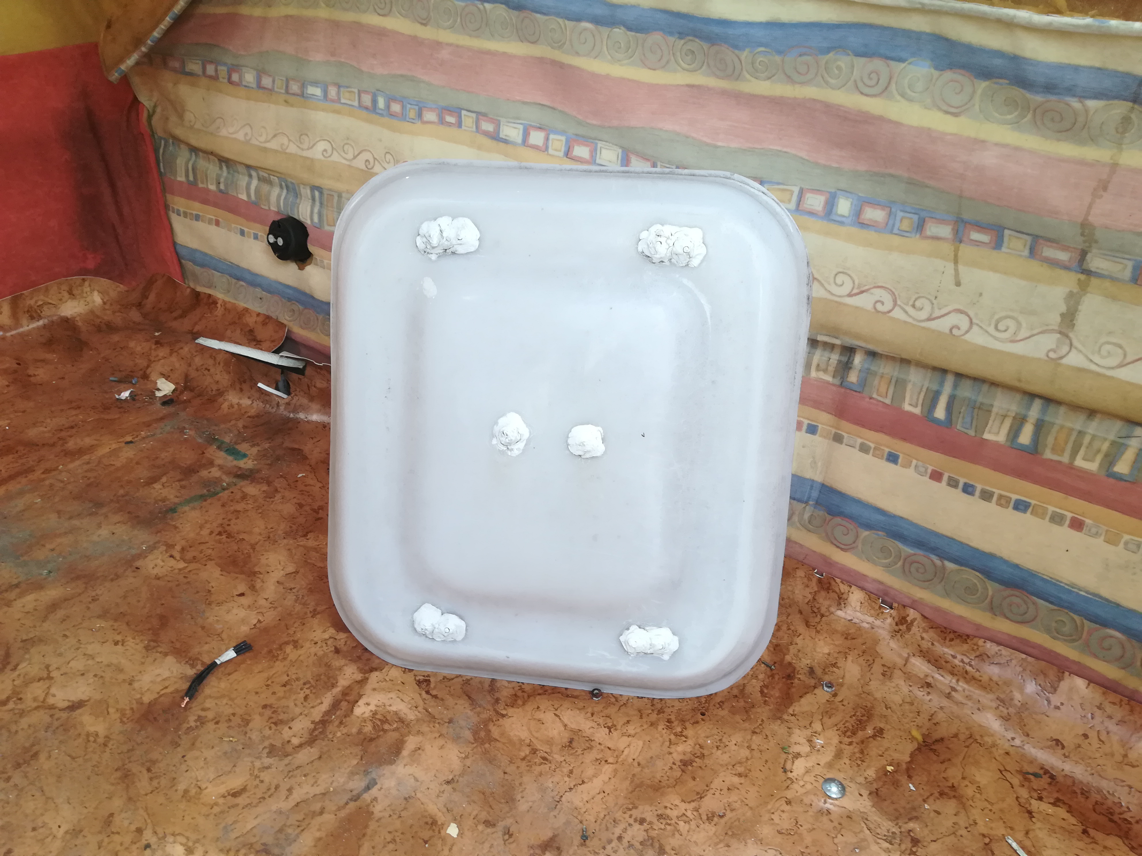 Udało mi się w końcu wyrwać całą sklejkę z podłogi. Przy drzwiach została przyklejona do ściany i zalana chyba wiaderkiem żywicy. A już myślałem, że takie kwiatki jak wczoraj to mnie nie spotkają. Jednak ta przyczepa zaskakuje mnie na każdym kroku.