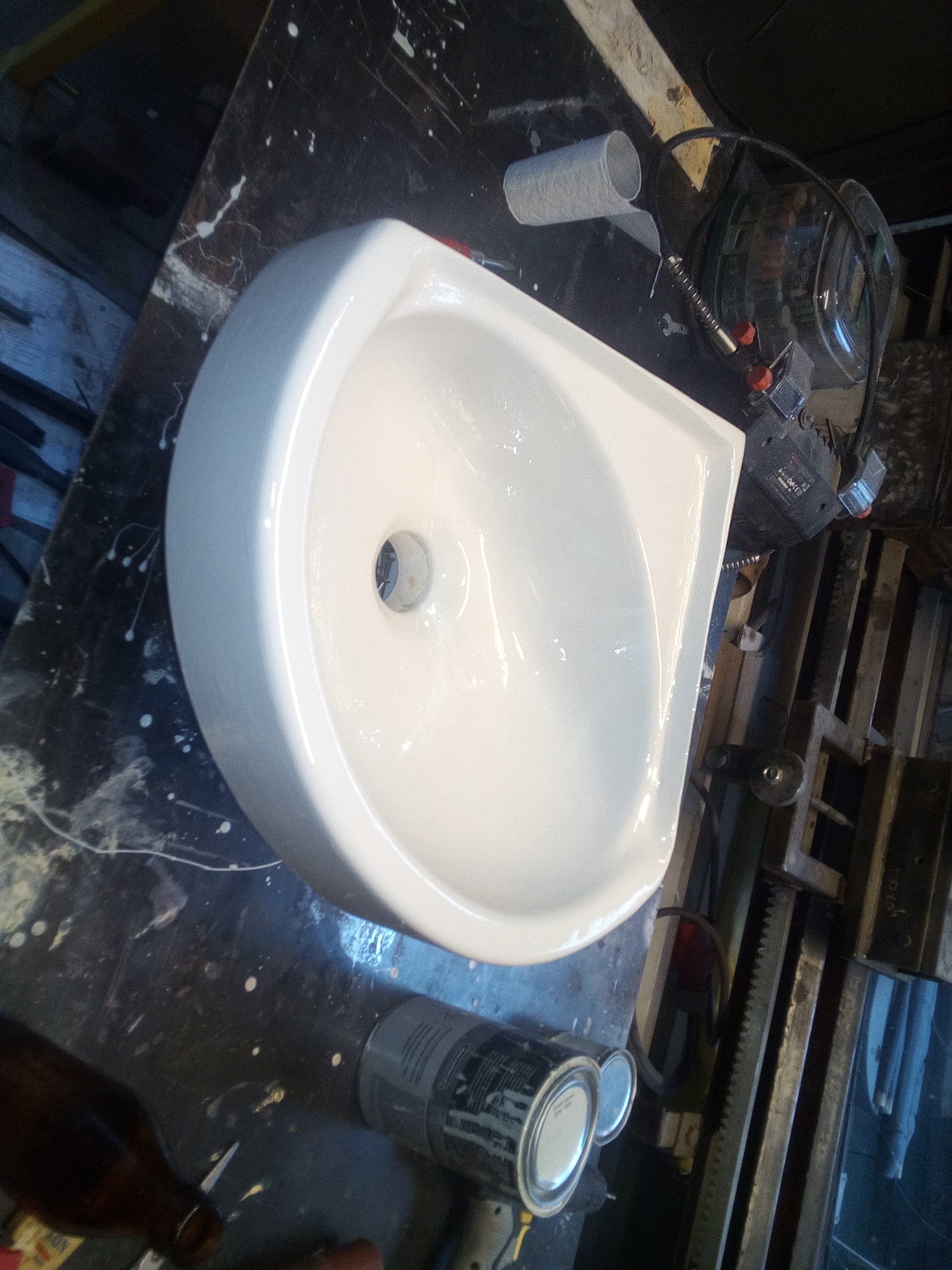 Pomalowałem umywalkę. Wstałem dzisiaj przed pracą o 5 z myślą „pomaluję, przeszlifuję, odtłuszczę i będzie git. Rano tak zrobiłem, skończyłem i patrze, a tu farba się zwarzyła, nie wiem czemu.... 2 popołudnia pracy i jak to zobaczyłem, wiecie że się popłakałem.....