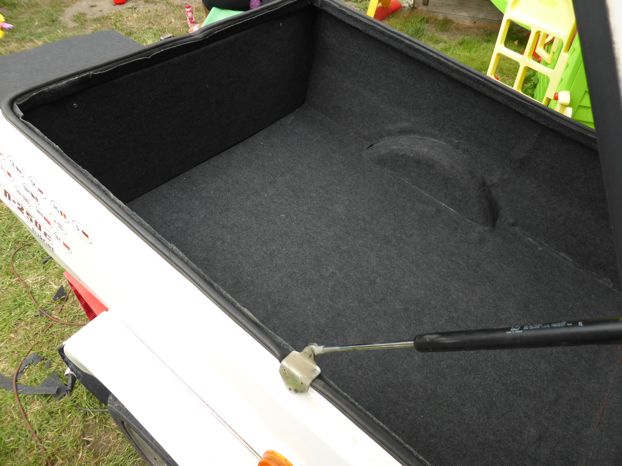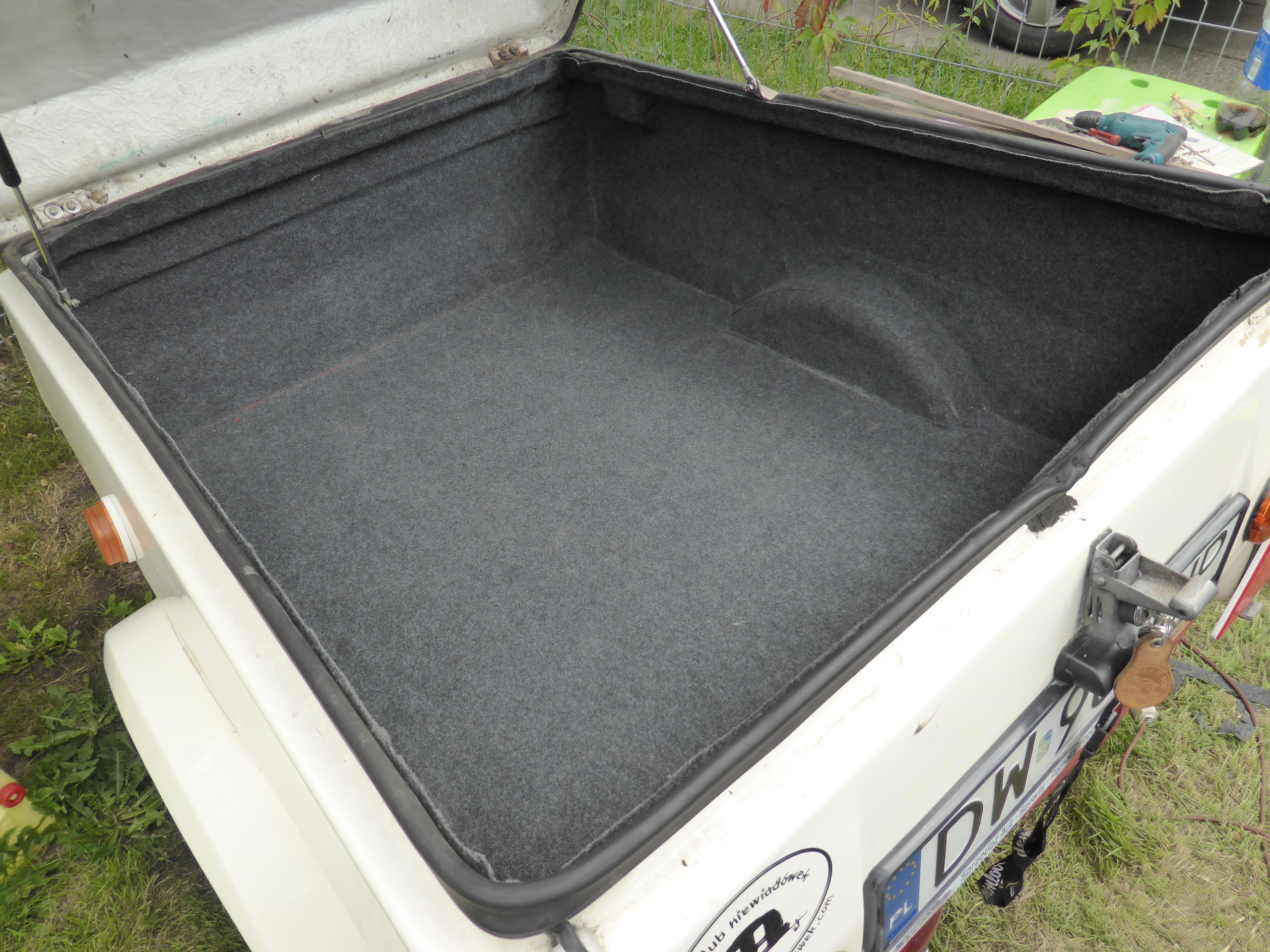 Podobnie zrobiłem swoją w środku, także dałem wykładzinę ale najpierw wyrównałem ścianki płytą poliuretanową, co prawda zabrało to troszkę miejsca ładunkowego przyczepy, ale w sumie bardziej chodziło mi o wygląd niż funkcjonalność.