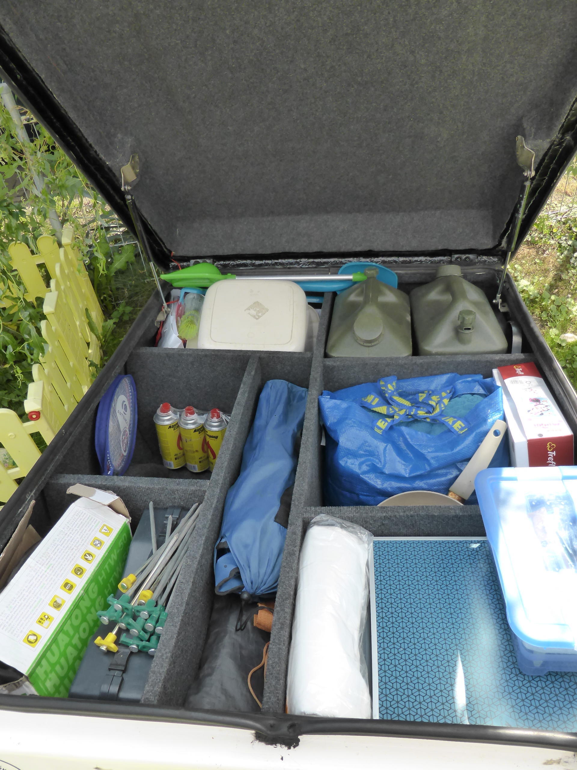 Kratownica zrobiona jest ze sklejki która kiedyś była podłogą w aucie dostawczym , została mi więc wykorzystałem ją , nie mierzyłem grubości tej sklejki ale będzie coś koło 1,5 cm spokojnie. A ze zależało mi na miejscu więc ścian nie równałem choć z początku tez mi to przez myśl przeszło, ale jednak za dużo cennego miejsca by zabrało. Zobaczymy jak wykładzina będzie wyglądała po pierwszych wakacjach