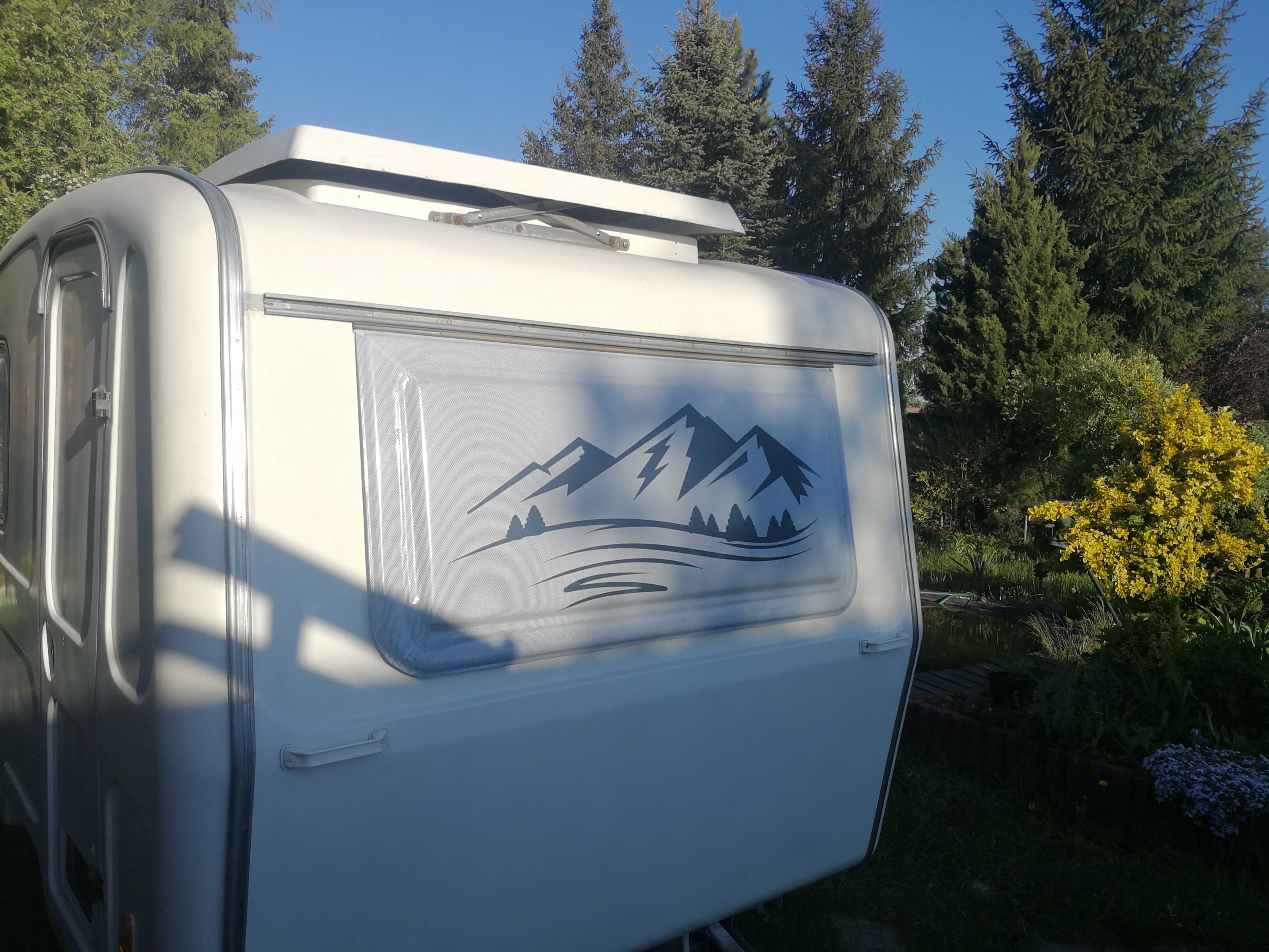 Pomysł niezły, widzę tu dwie zalety: można uratować stare okno oraz nie trzeba używać firanek w przyczepie.