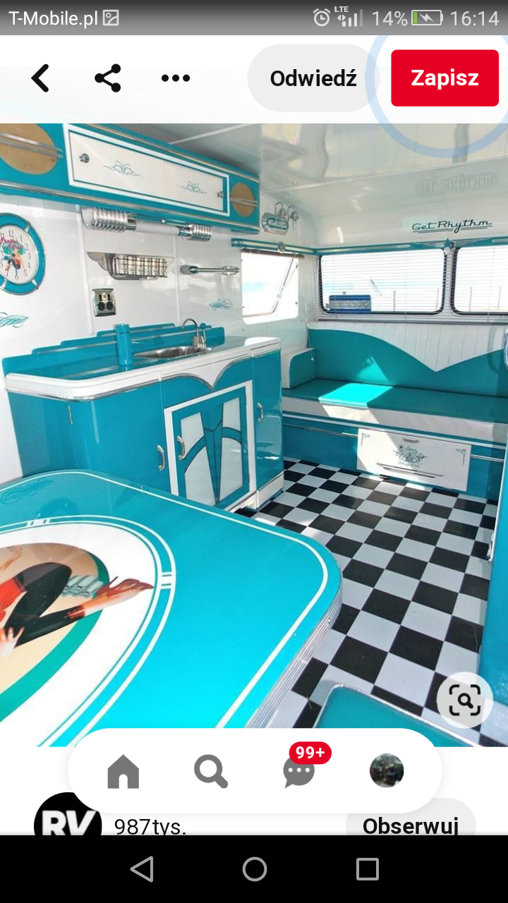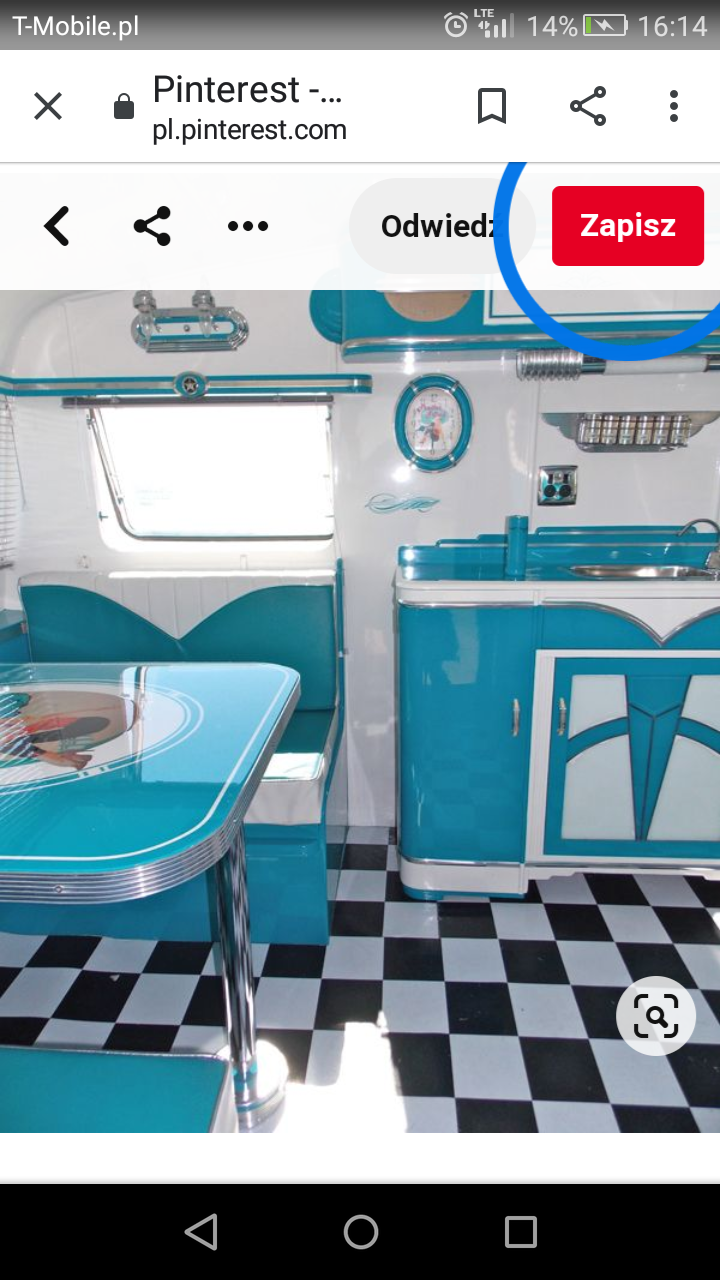 Wnętrze super. Typowe lata 50-60 te i hamerykansky styl. Do tego owalna lodówka i dodatki z epoki.