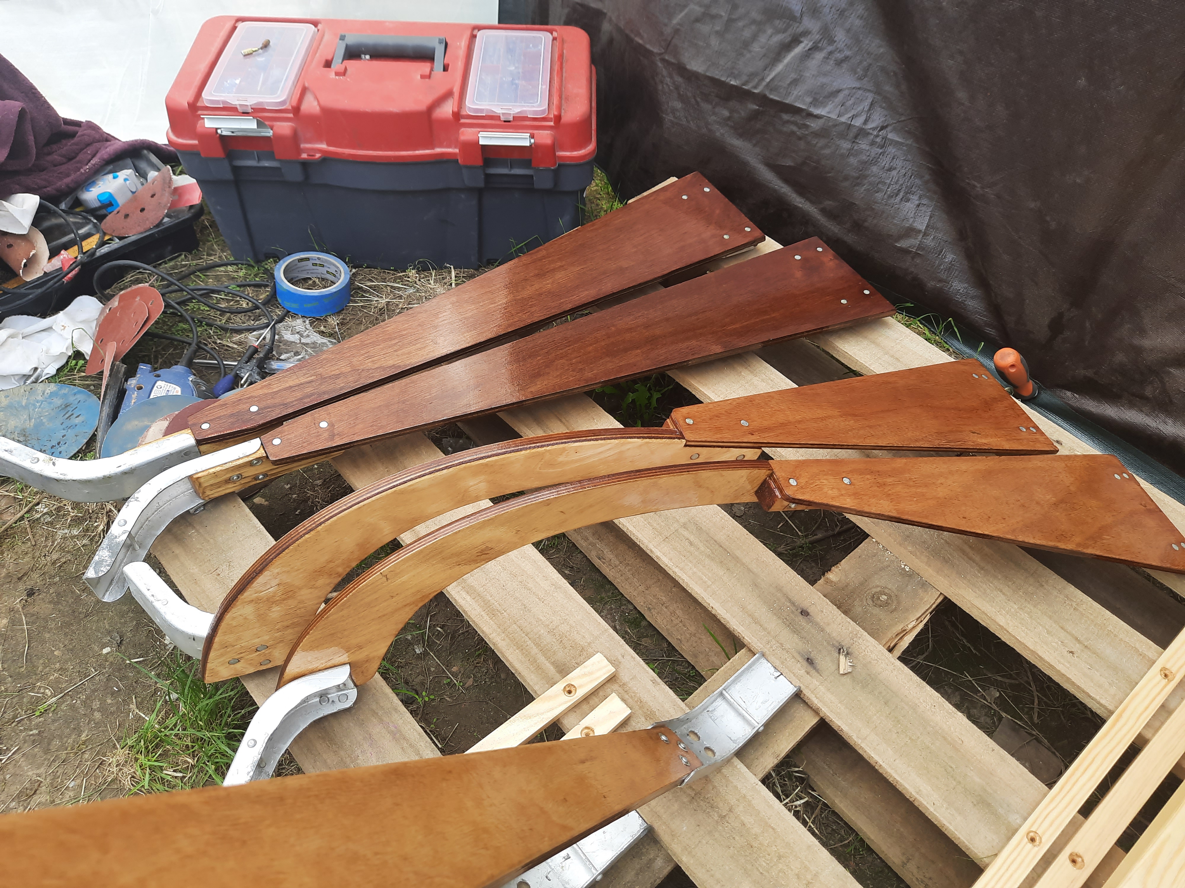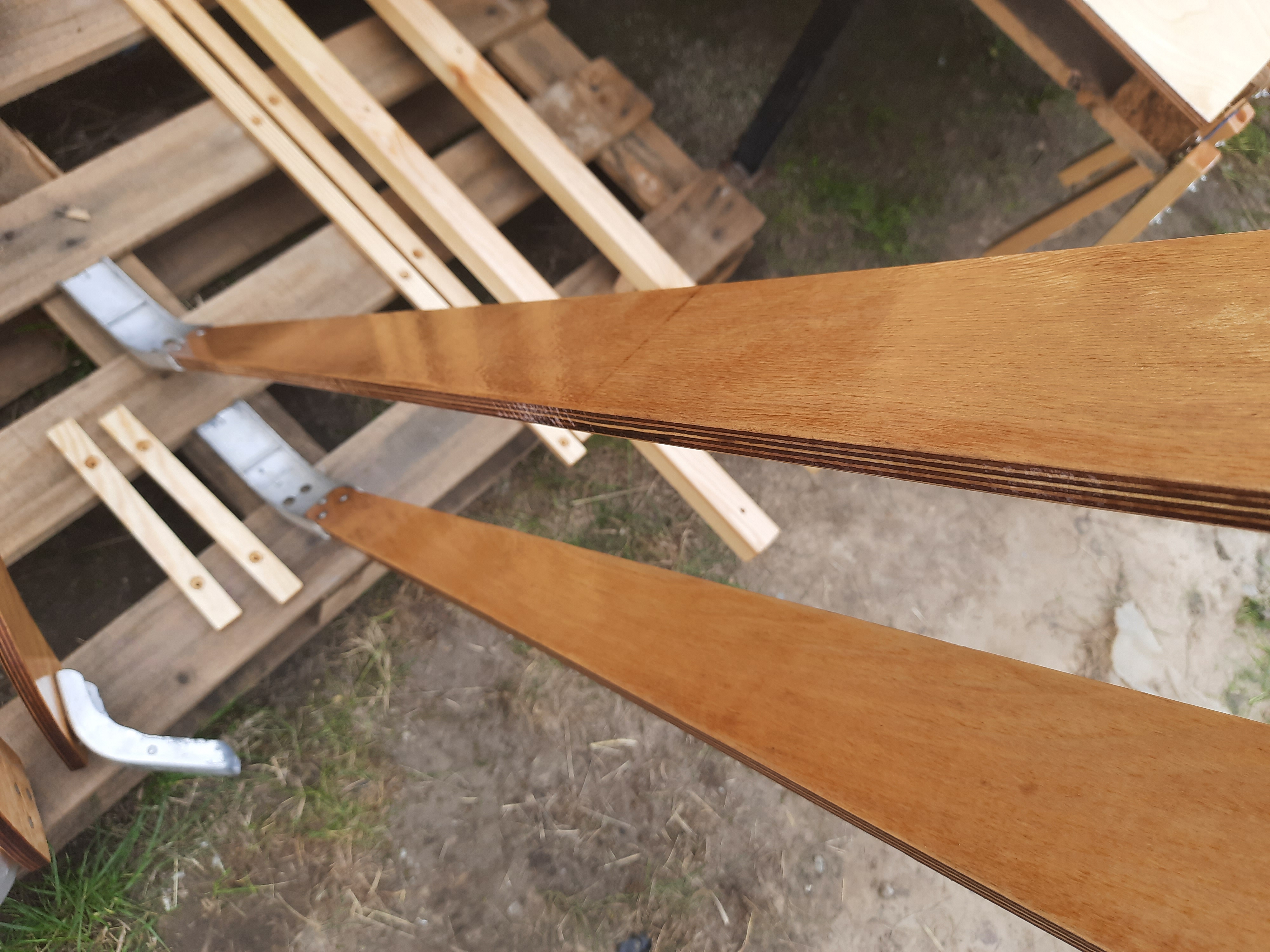 Dorobiłem dodatkowo sklejkę z nóżkami do wstawienia bezinwazyjnie pomiędzy "skrzydła". Taka dostawka da możliwość spania nam z Żoną w poprzek, obok siebie na wygodnym dmuchanym materacu o szerokości 120 cm.