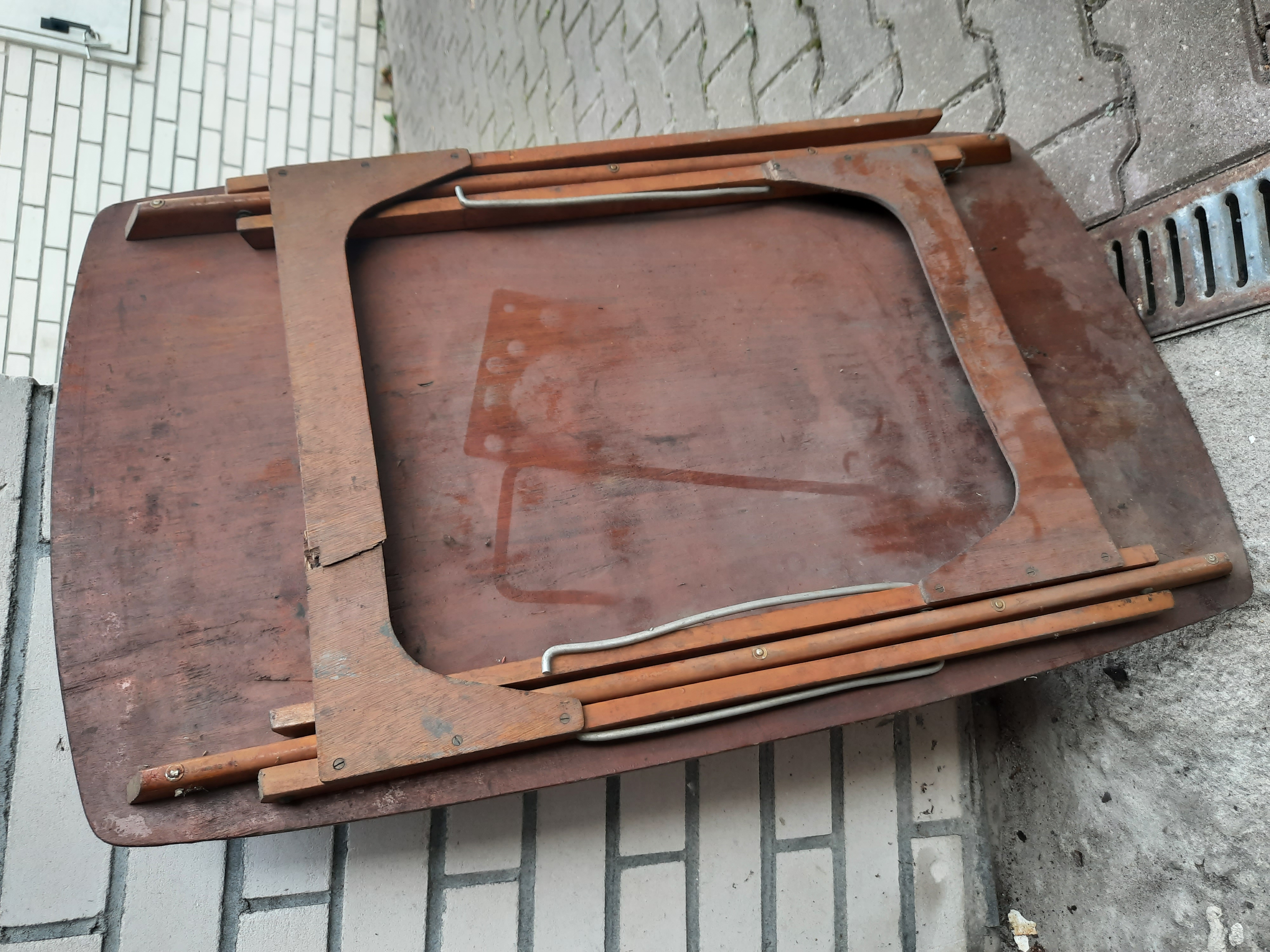 Oto kilka dni temu spotkała mnie miła niespodzianka... Otóż były właściciel przypomniał sobie, że ma jeszcze oryginalny stolik, który był na wyposażeniu Trampa. Trzeba będzie też mu kilka godzin poświęcić, żeby dostał blasku.