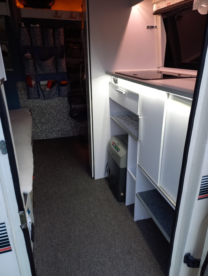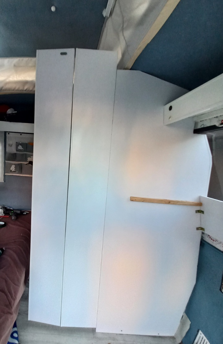 Pa majówce natchnęło mnie na przebudowę kuchni z łazienką. Postanowiłem wszystko wymontować solidnie przemierzyć co do cm... i zrobić od nowa juz tak całkowicie pod naszą trójkę. Najważniejsze to przedłużyłem o 11cm ściankę działową. Umywalkę zamieniłem stronami z WC. Dzięki temu wchodząc do przyczepy nie patrzy się na wprost na kibelek a i gotując coś w kuchni nie będzie już widoku na WC. Przy WC dojdą drzwiczki 20cm rozkładane na dwie części co da po rozłożeniu 40cm i będą odgradzały łazienkę do samego brzegu łóżka. Kuchnia będzie wyższa o minimum 10cm aby nie trzeba było się schylać. Dolna szafka na buty będzie szersza i wyższa. Z piekarnika rezygnuję bo w praktyce jezdzimy bardziej na dziko i mało z niego korzystaliśmy - w tym miejscu będzie przesuwna szafka. W miejsce zlewu wyląduje stały blat kuchenny. W praktyce korzystaliśmytylko z umywalki także drugi zlew był zbyteczny. Co do płyt do zastosowałem wiórowe, laminowane, szerokości 10mm.