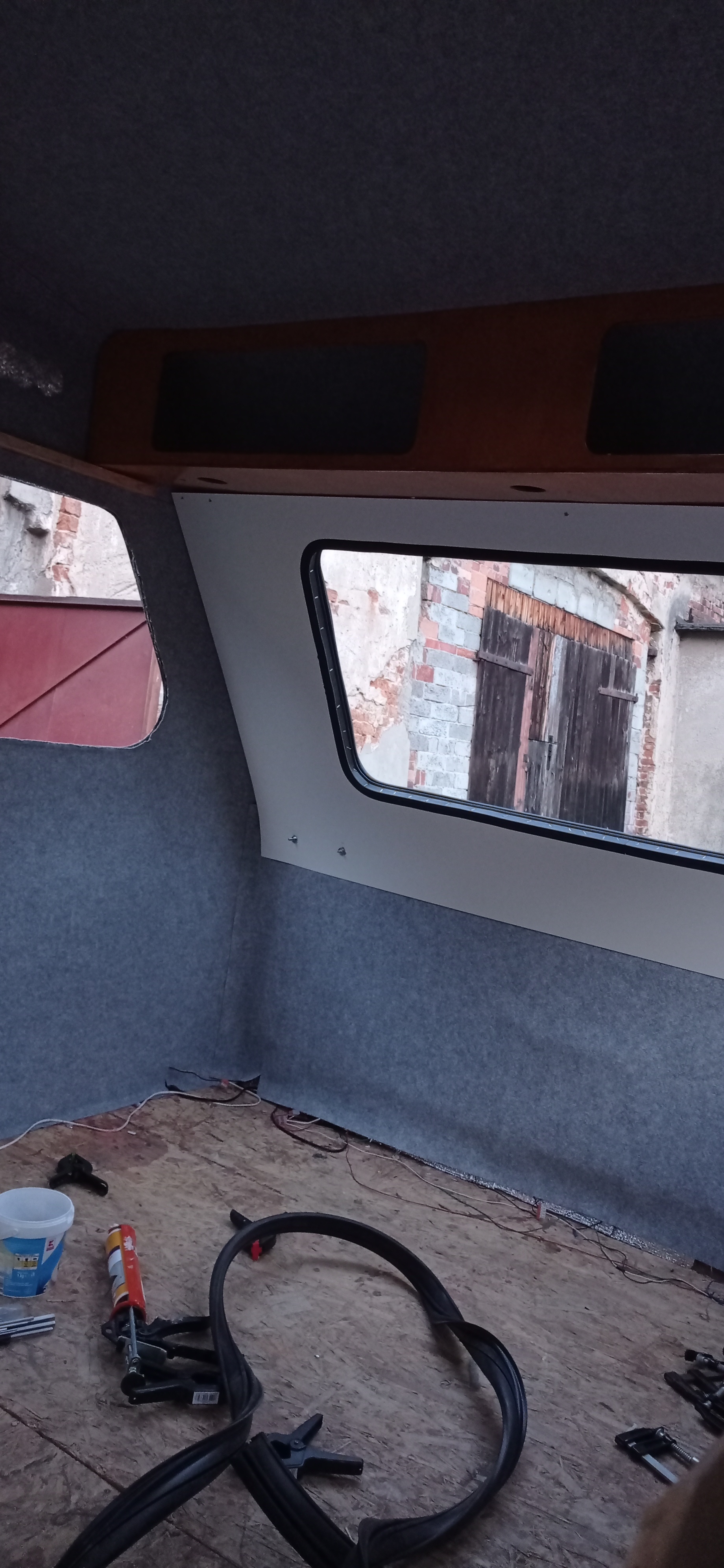 Tapicerka została już wyklejona. Została tylko kosmetyka. Montaż maskownic na okna, uszczelki i okna. Zrobiłem dzisiaj wycieczkę do Wąsocza do iGaz celem zakupu gazowych gratów. Drogie szpeje. No cóż nie robię tego na chwilę tylko na lata.