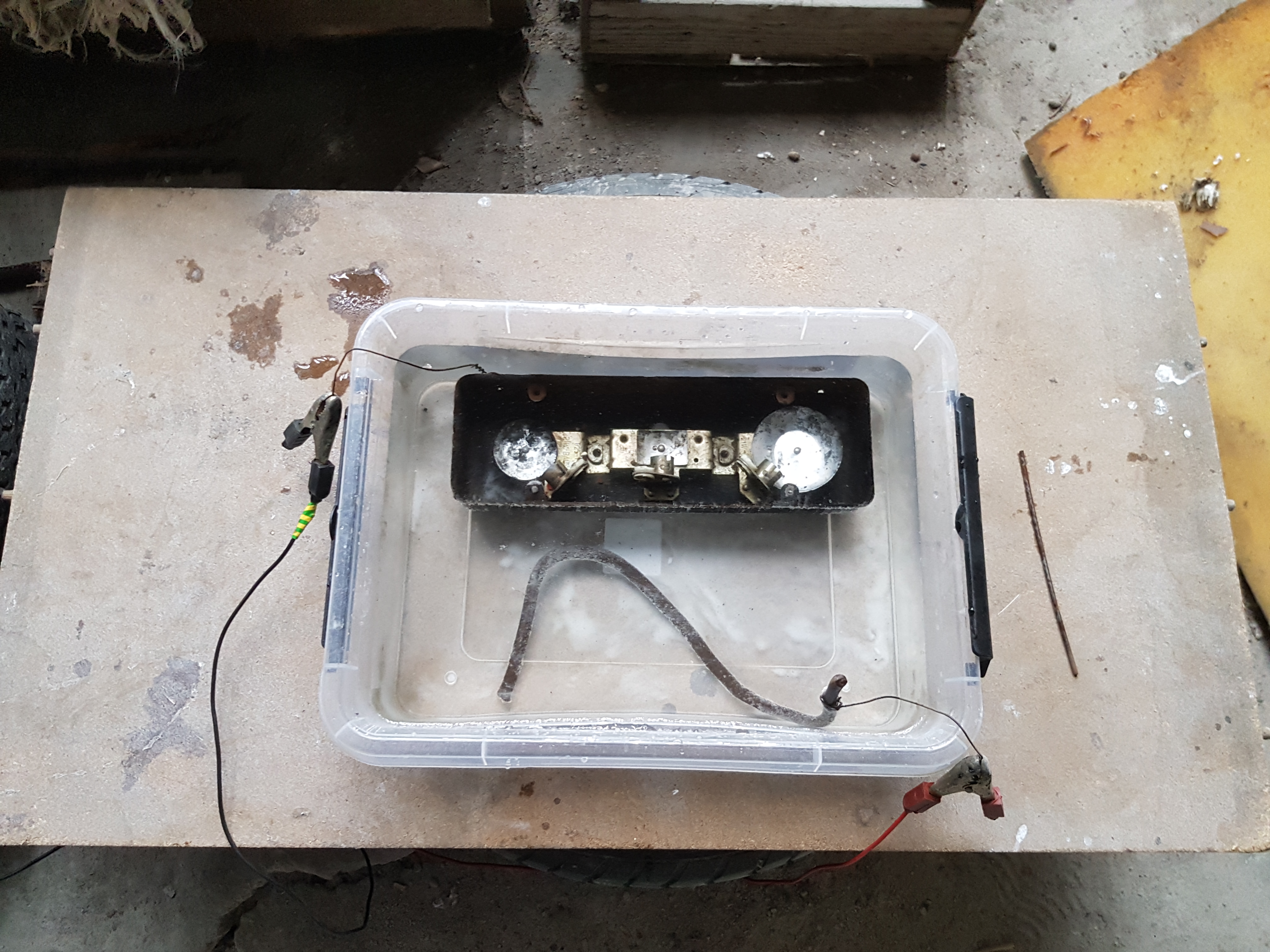 Zabrałem się też za regenerację lamp tylnych. Będą oryginalne. Jedną udało się kupić w dobrym stanie, druga odnaleziona do regeneracji. Rozbieranie, elektroliza, czyszczenie rdzy, i narazie pomalowana odrdzewiaczem. I tu pytanie - musiałem wyjąć wkład. A wkład zamontowany do obudowy na stałe jest za pomocą... ? To tuleja poziomująca czy nitonakręta rozprężna m6 ? Chyba to drugie ale pewny nie jestem. Jeśli ktoś odnawiał lampy czytaj wykłady to jak reanimowaliscie odbłyśniki? Jest jakieś "pazłotko"