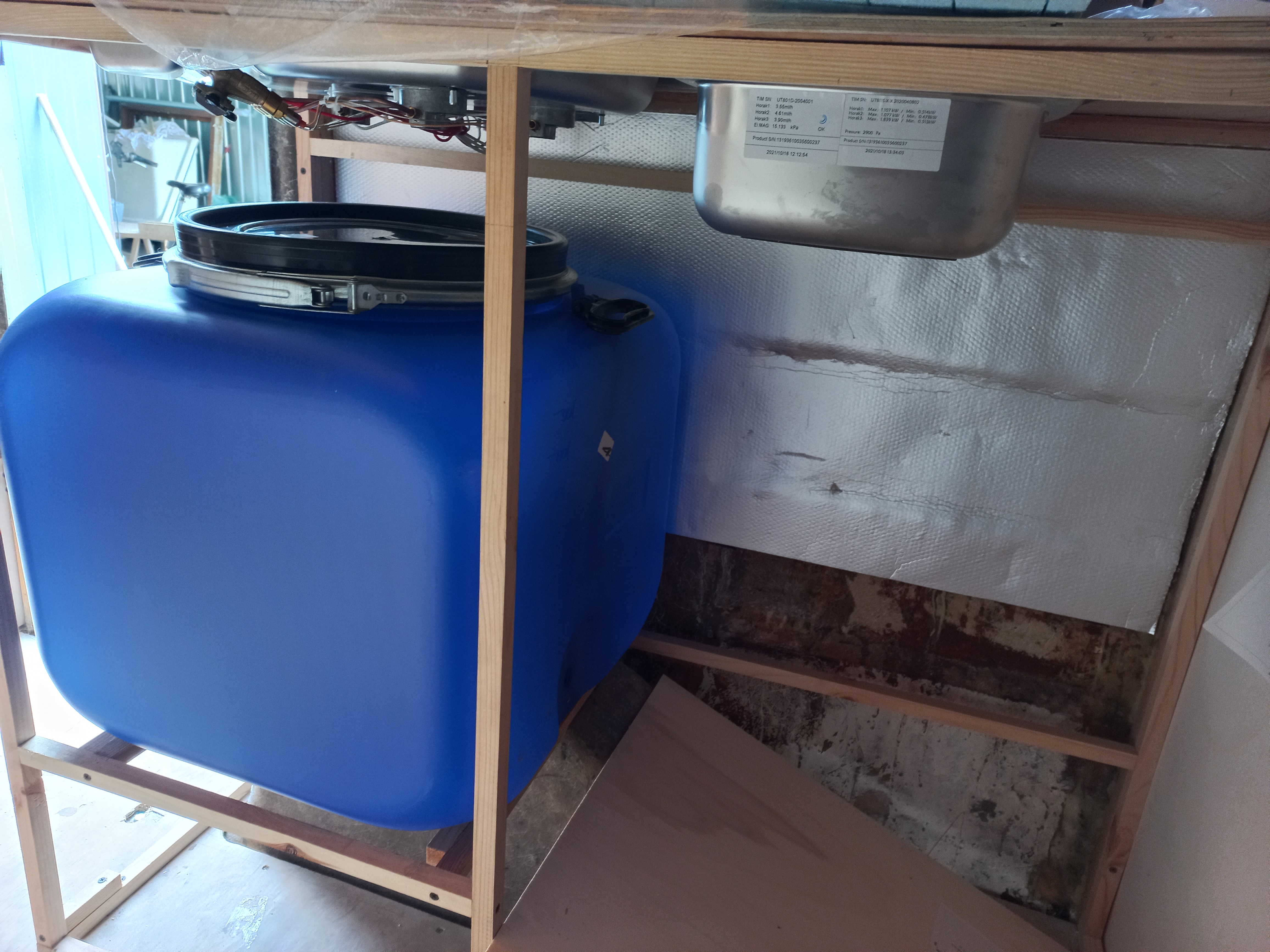 Dzisiaj przyszedł 100 litrowy zbiornik, który idealnie mieści się pod kuchnią i spoczywa idealnie na kole.